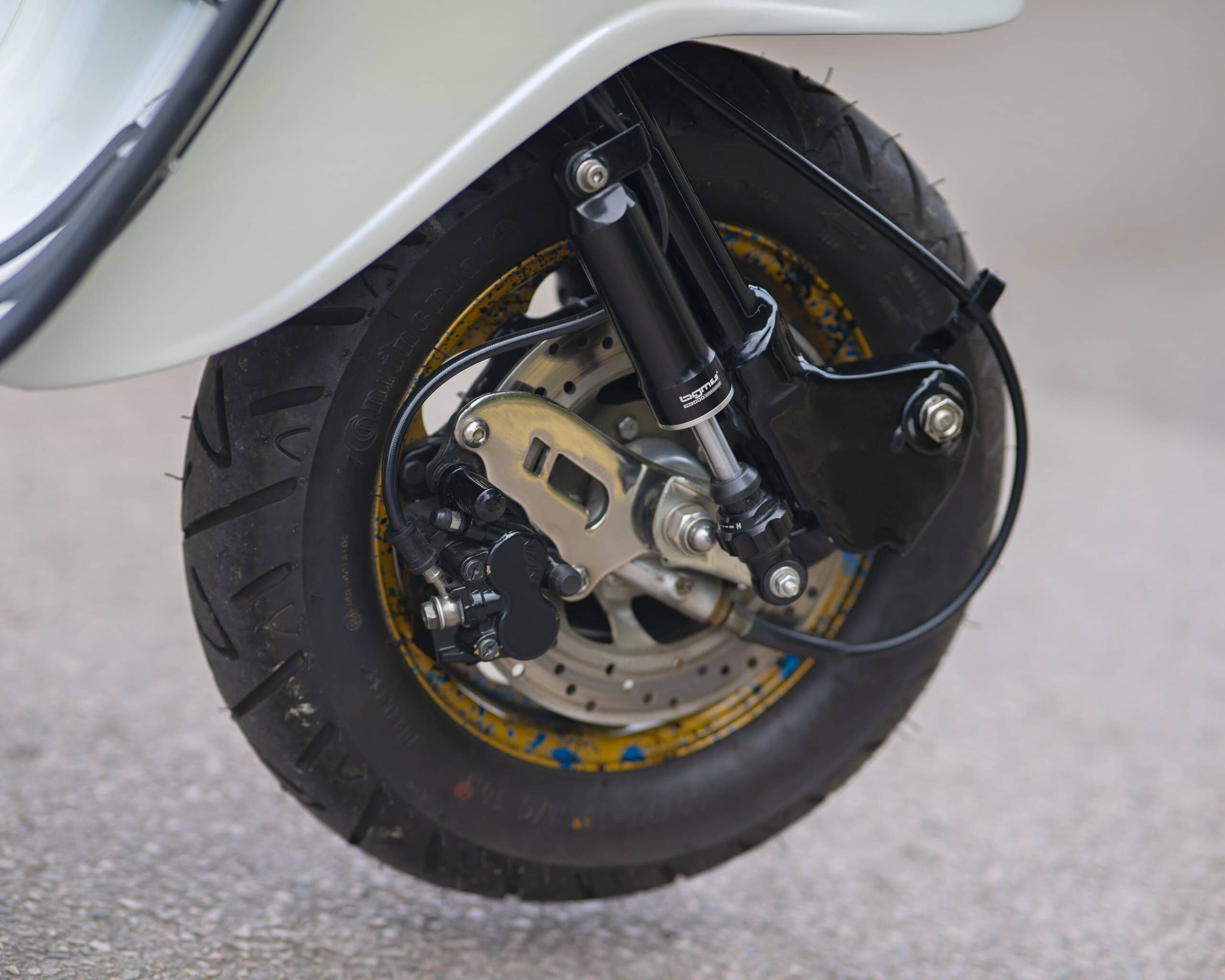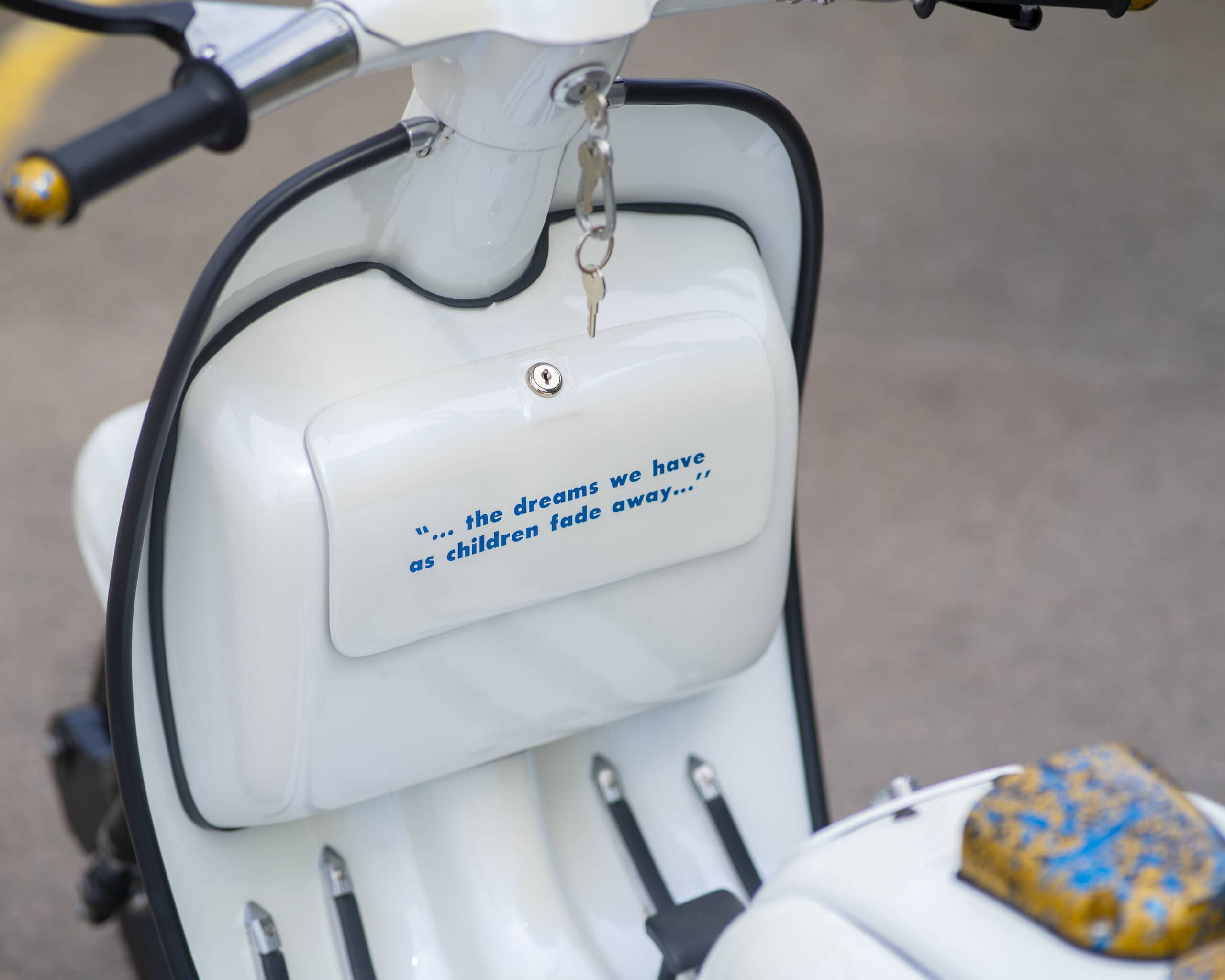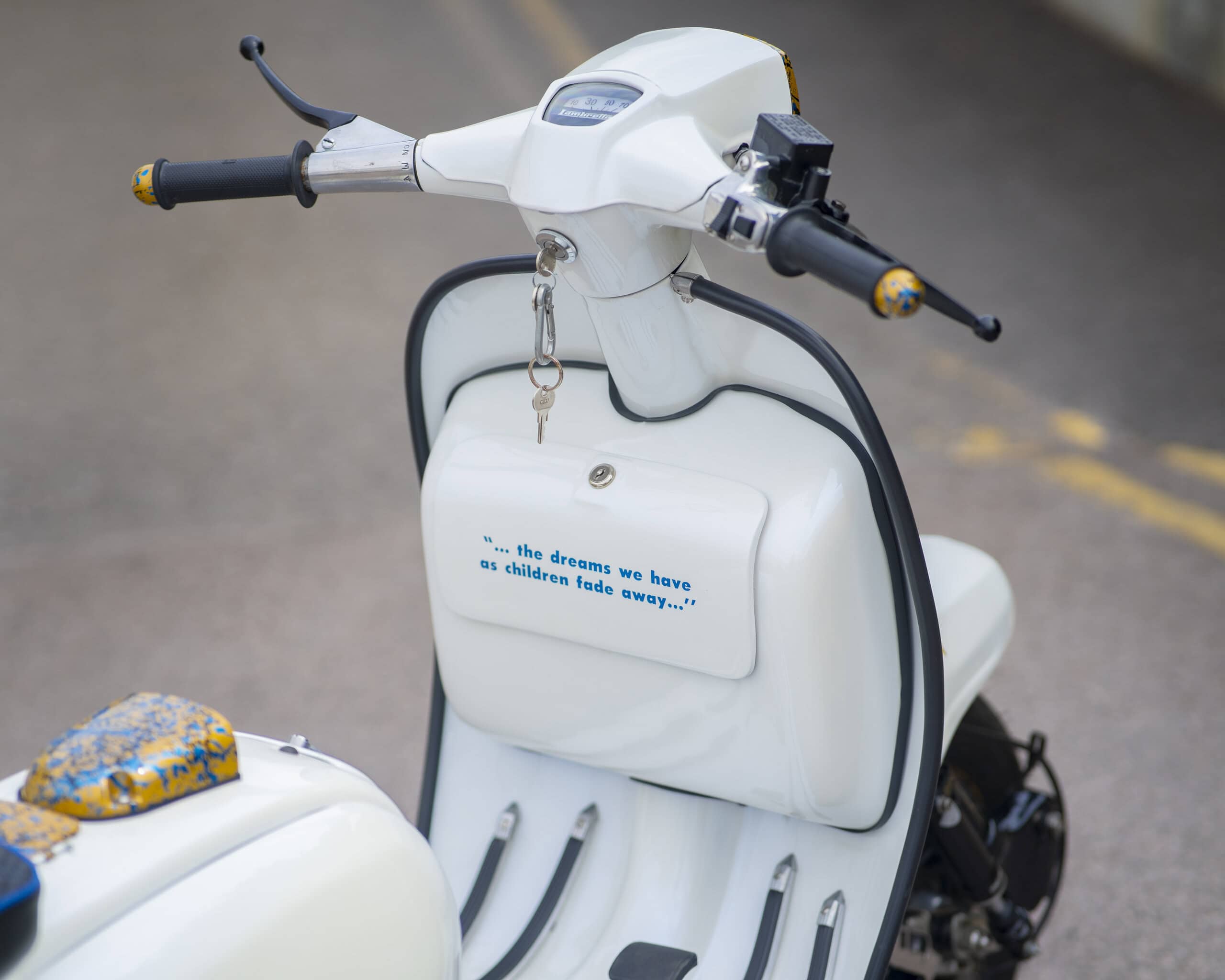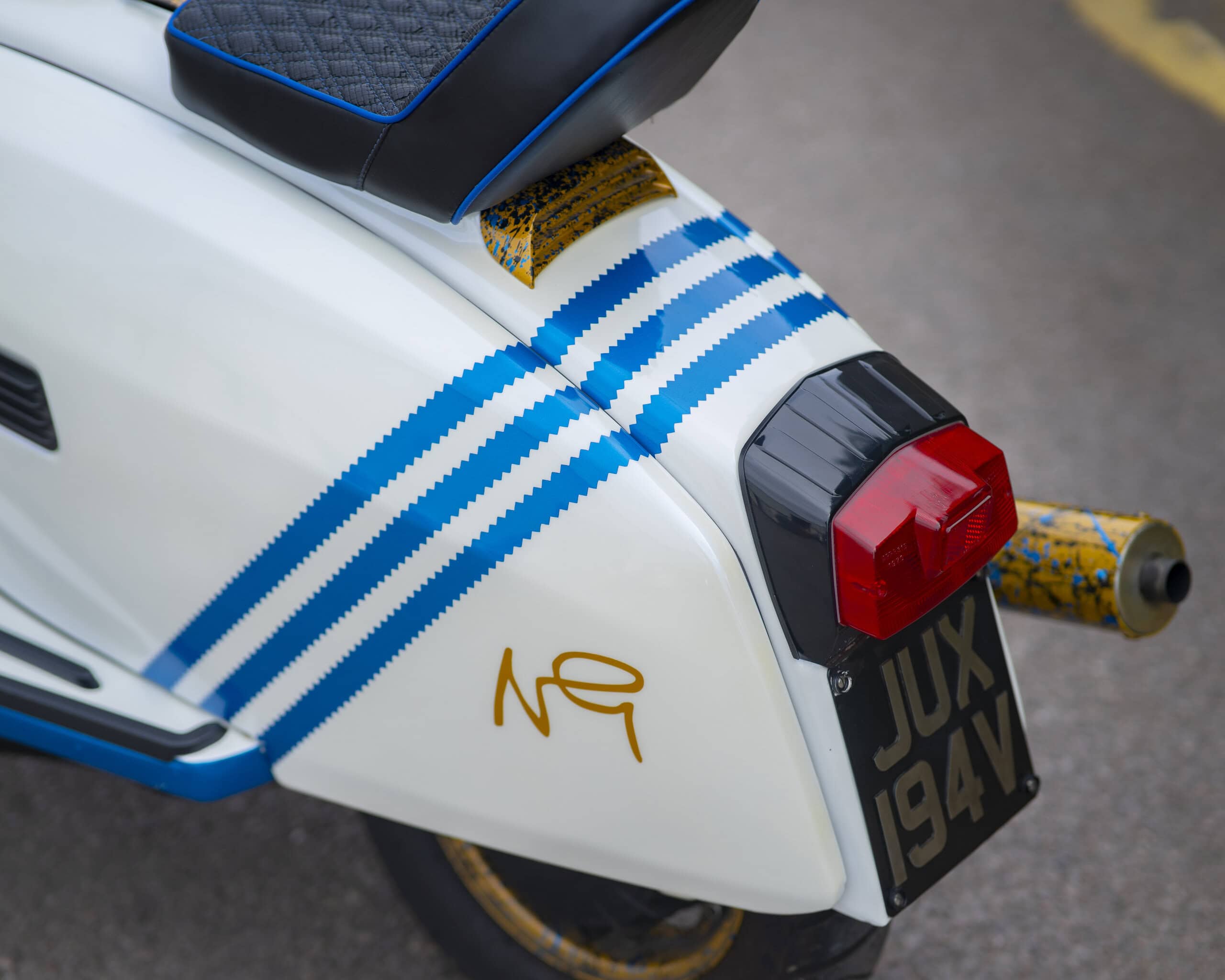 Registered as a 125cc, it’s been fully rebuilt with a TS1 225 kit, offering big power and classic 2-stroke thrills. The build was carried out by two of the most respected names in the game: Brad Brough (author of Time, Trouble & Money) handled the scooter build, while the engine was built by none other than Dale Winney.
