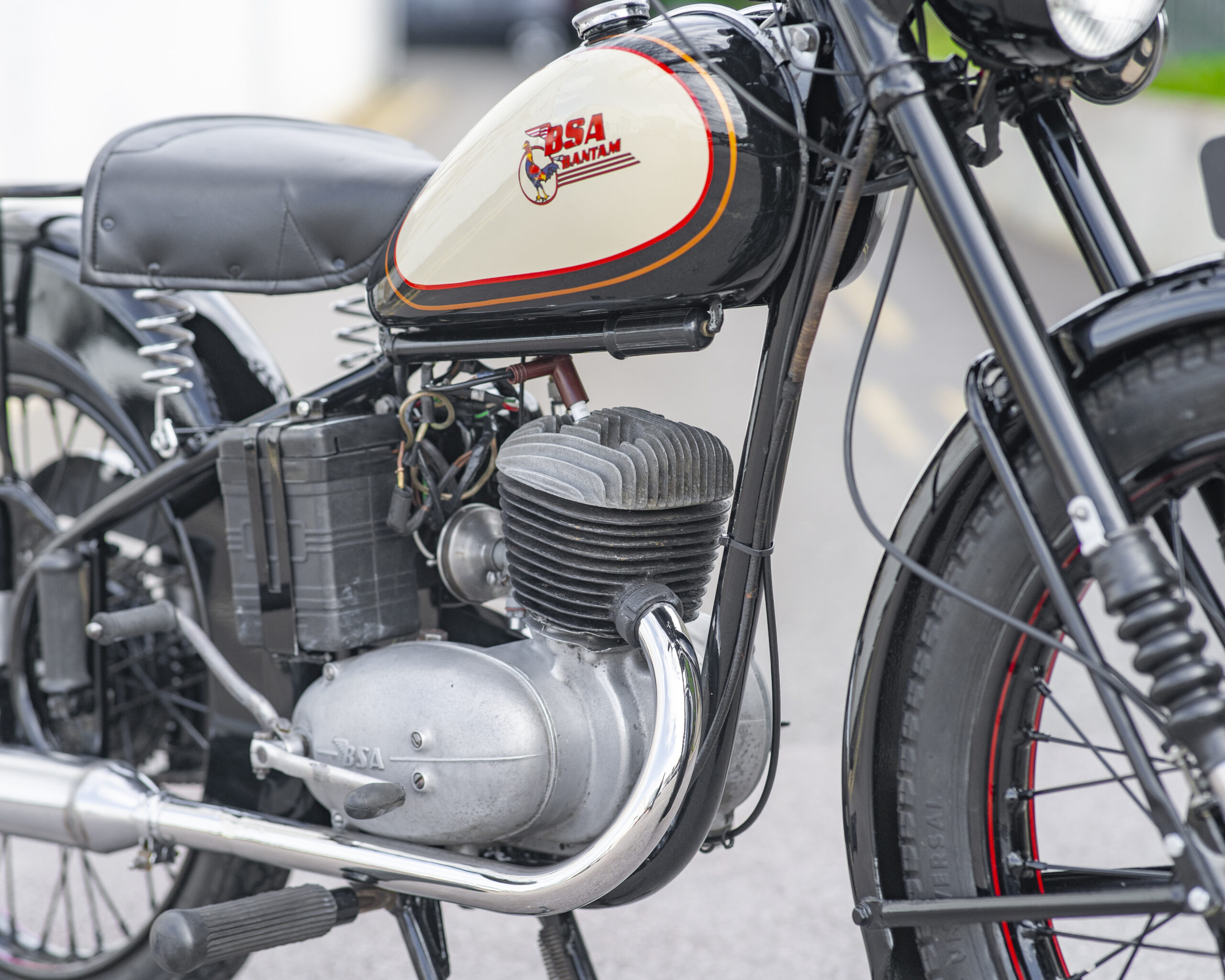 A 1958 BSA Bantam D1 in excellent condition, freshly repainted and looking superb with black rims. Starts easily, runs and rides very well — a fun and iconic British lightweight.