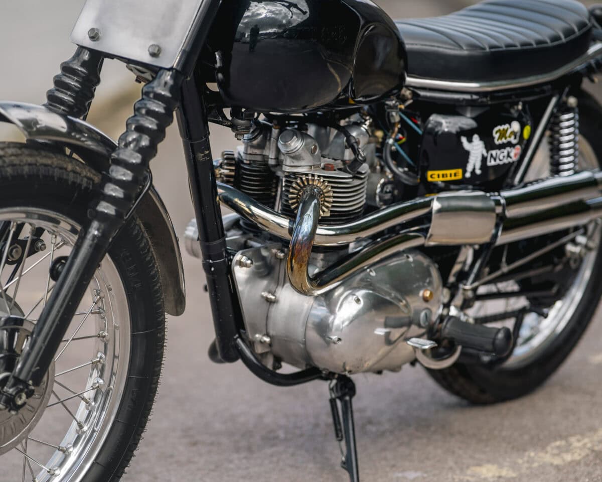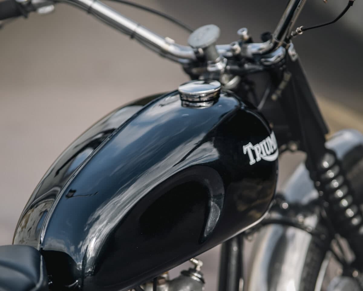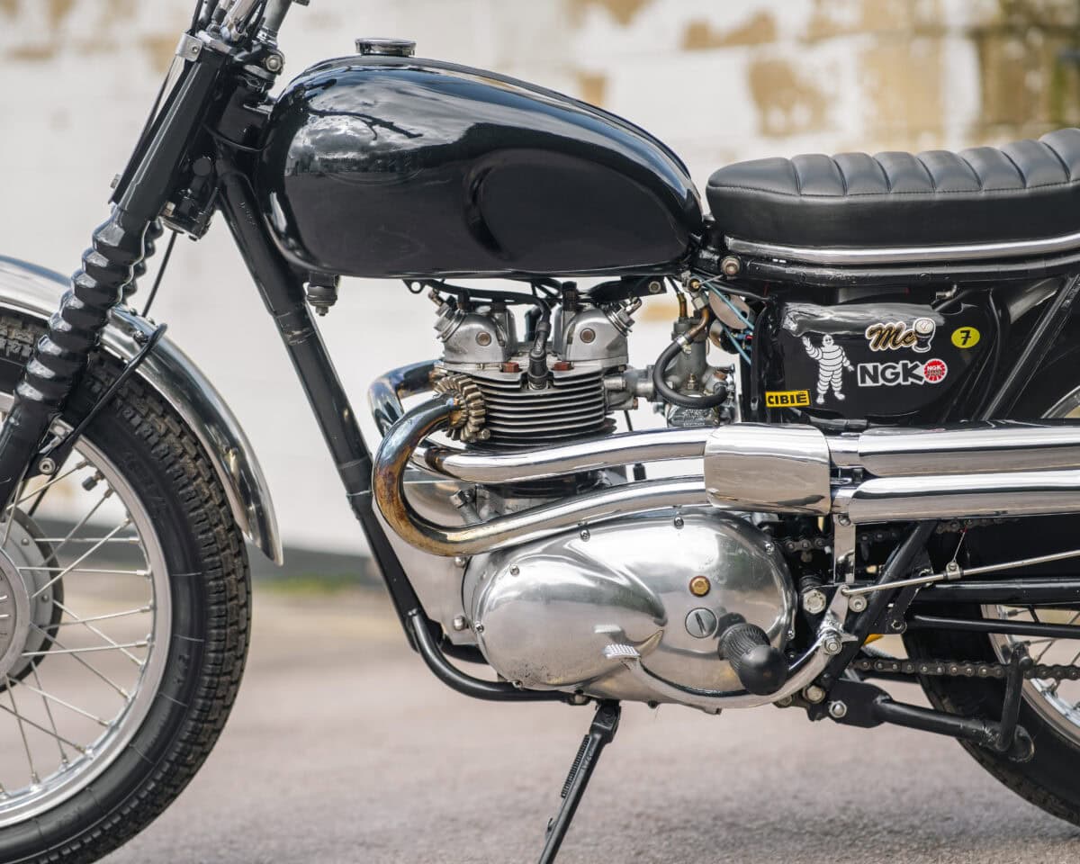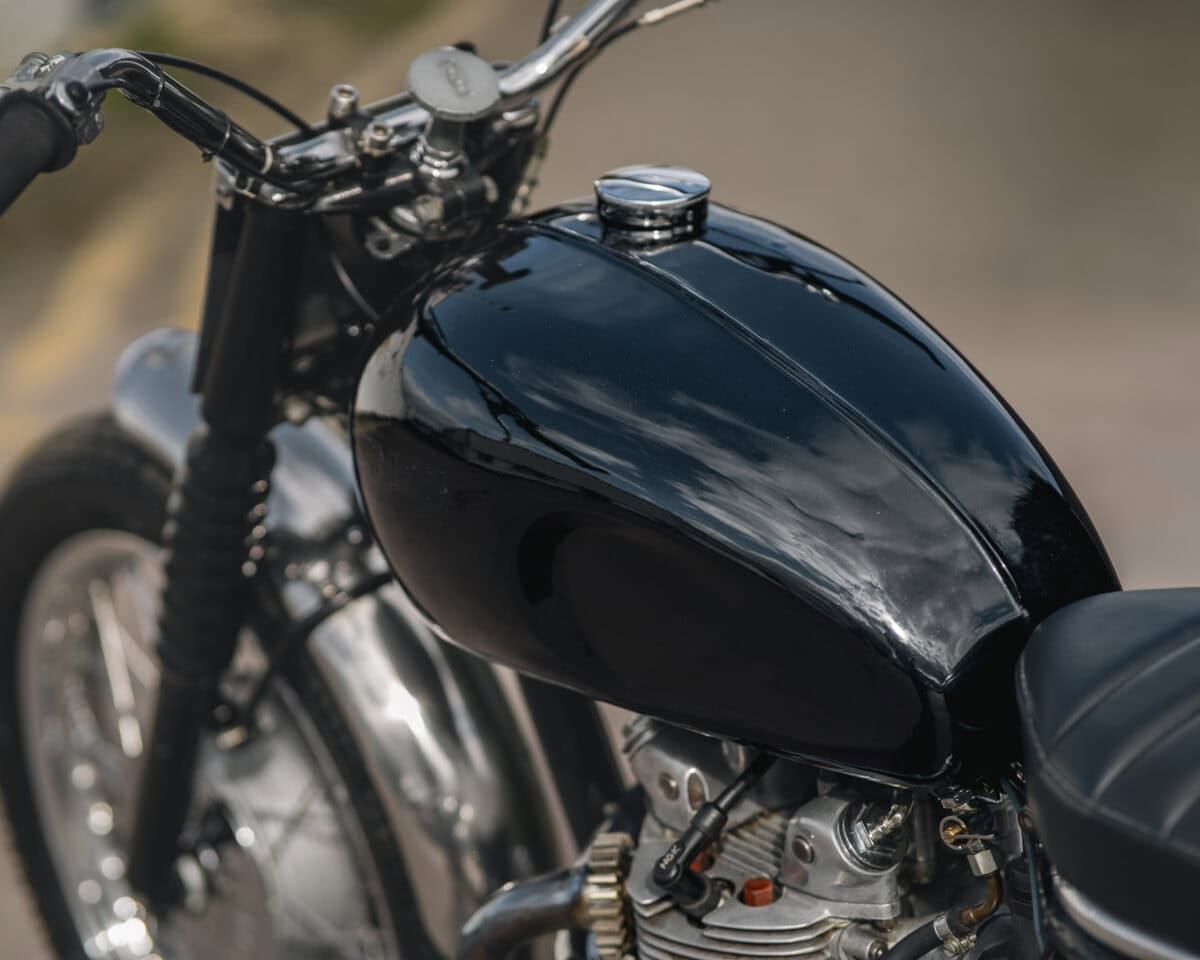 - Recently resprayed fuel tank, completing its vintage scrambler aesthetic.