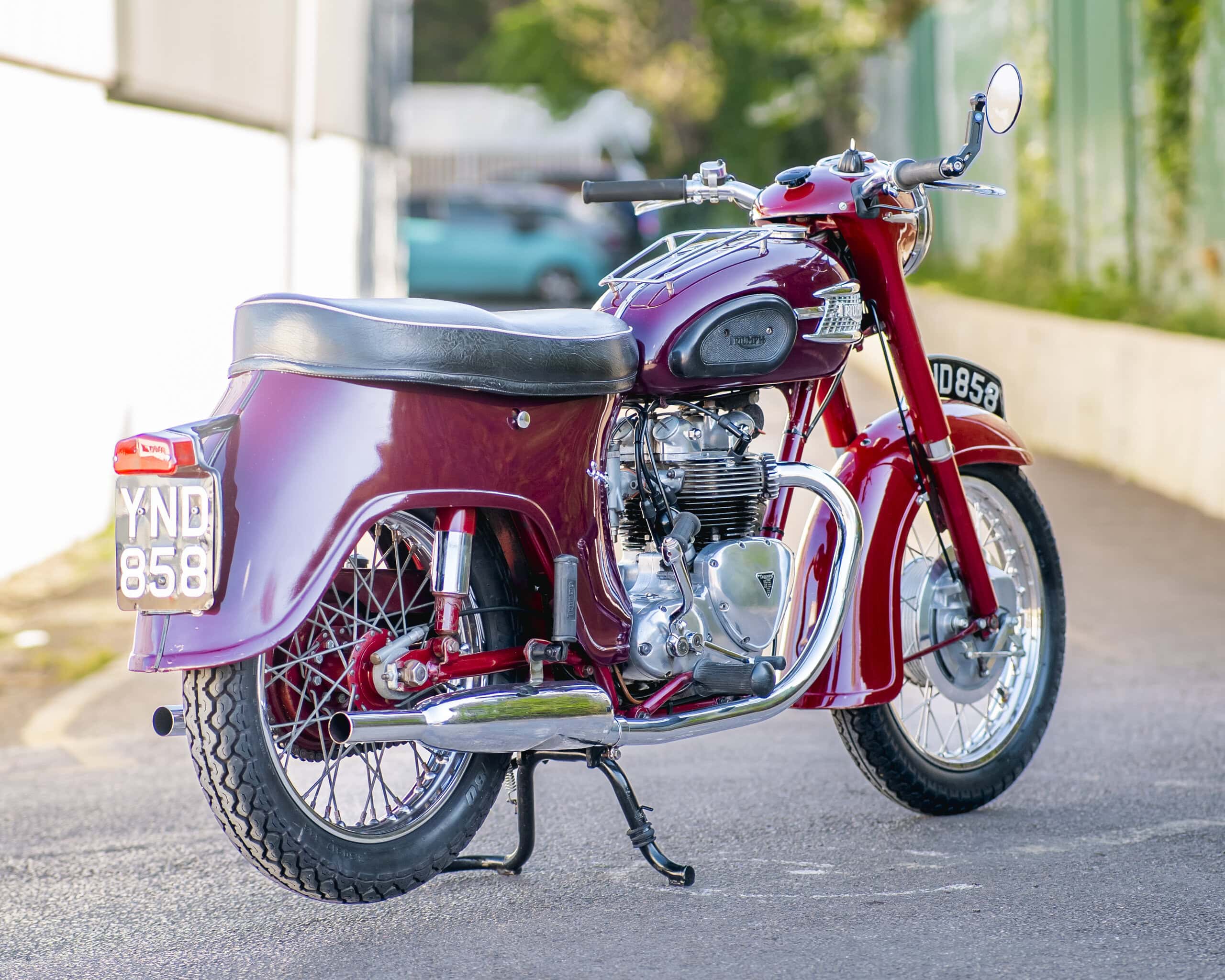 Rear: Twin shocks, suited for classic road use.