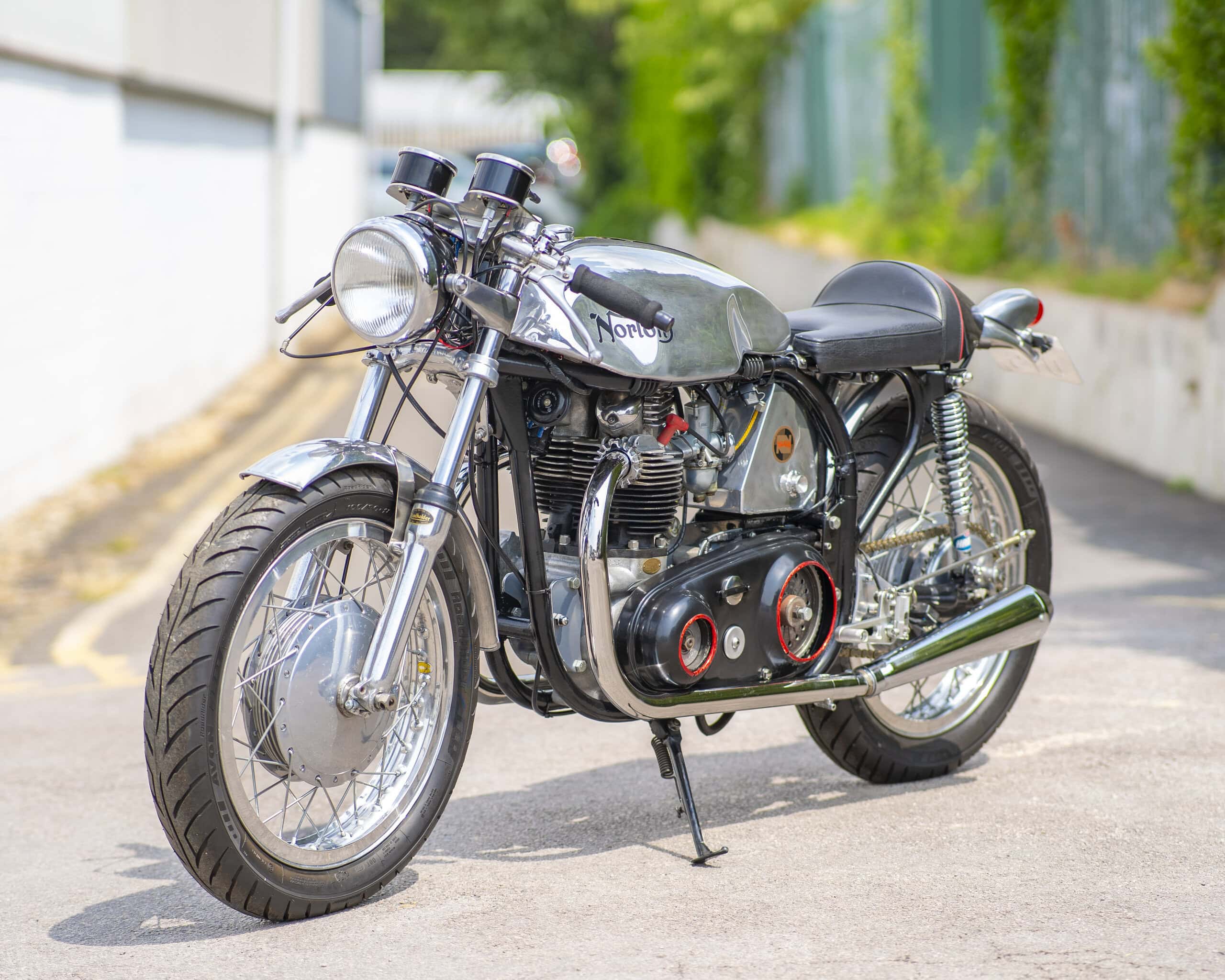 A striking custom café racer build based on the iconic Norton Dominator 500, combining period performance with classic style. This machine features desirable upgrades including alloy flanged rims, a vented front brake, and twin clocks, all built around Norton’s legendary slimline featherbed frame.