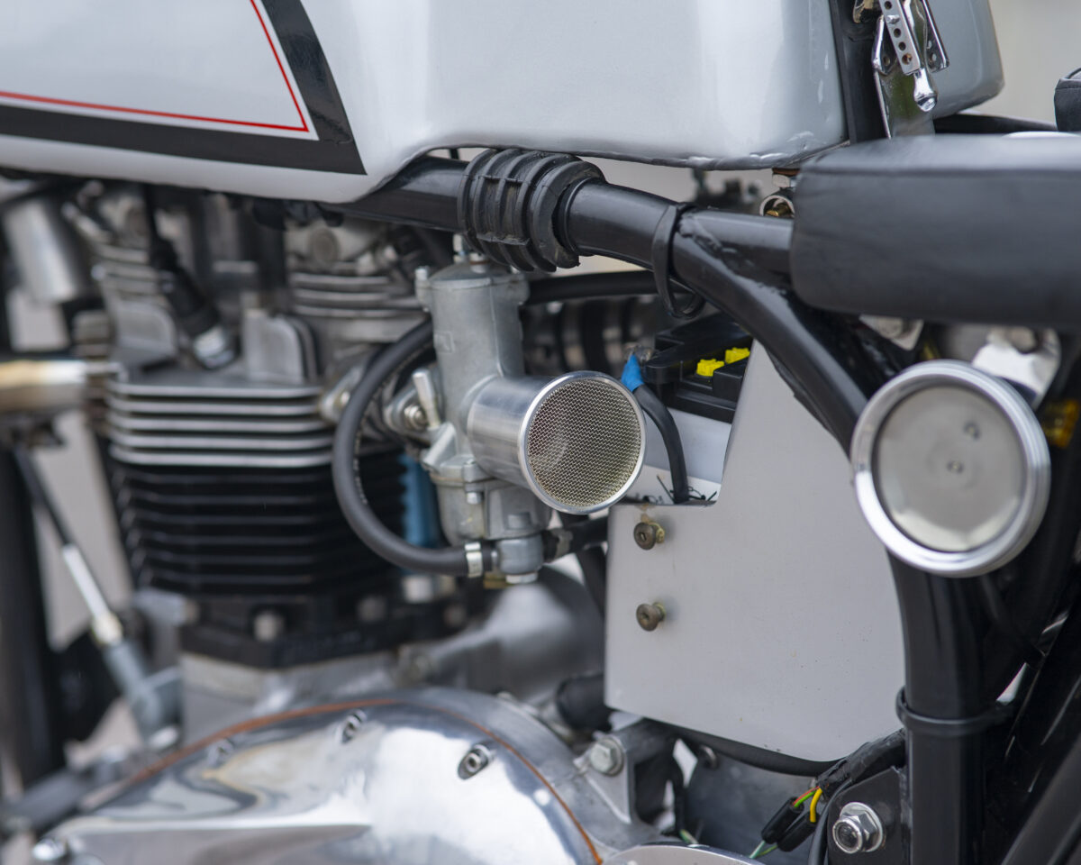 Finished in polished alloy and gloss black, with standout detailing and a roaring twin megaphone exhaust, this Triton is a real head-turner on the road or in the paddock.