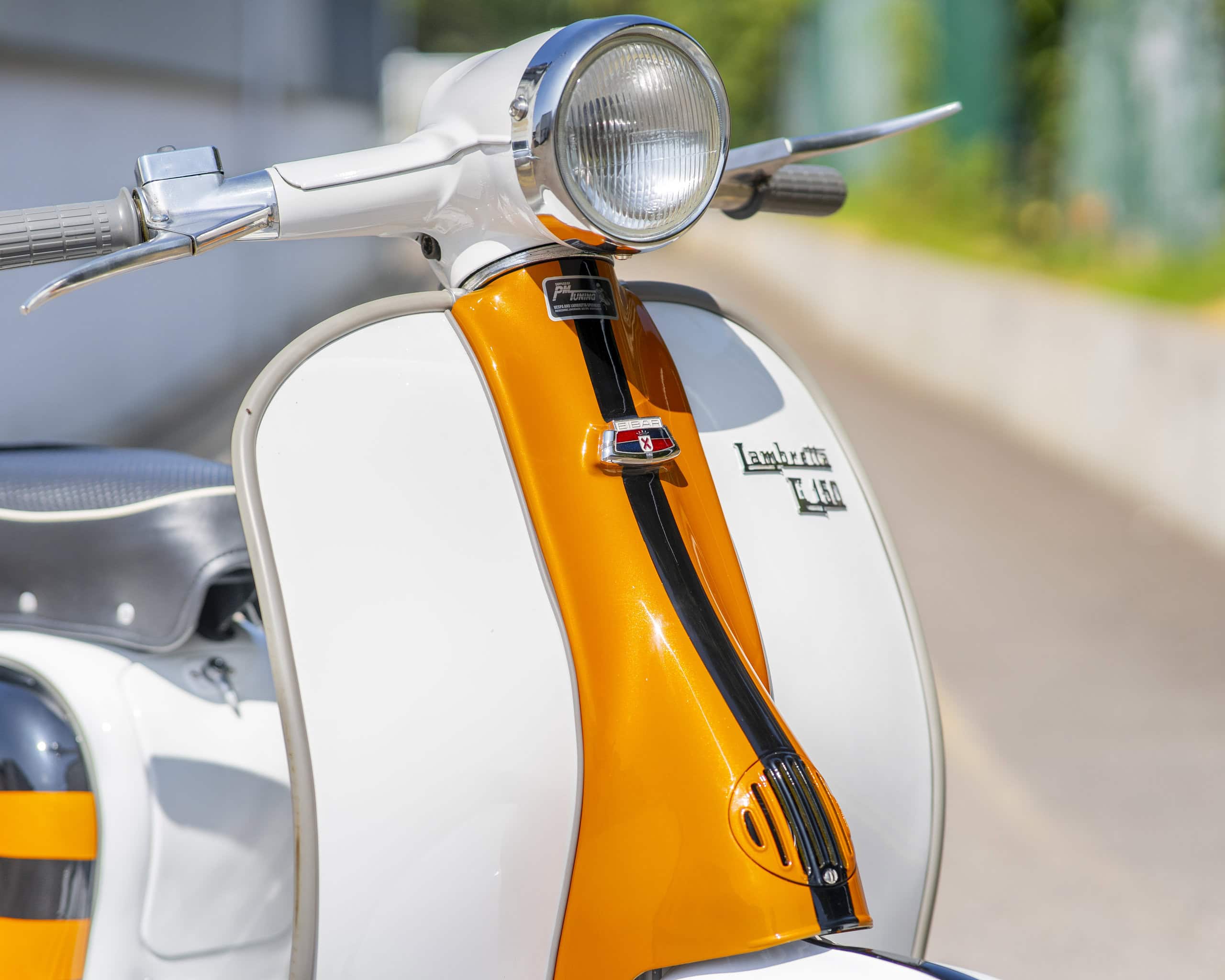 A truly stunning Lambretta Series 2 from 1962, freshly rebuilt and finished to an exceptional standard. This scooter captures the spirit of the 1960s with its classic rounded panels and iconic silhouette—now reimagined with a professional custom paint scheme in gloss white, black, and Porsche burnt orange.