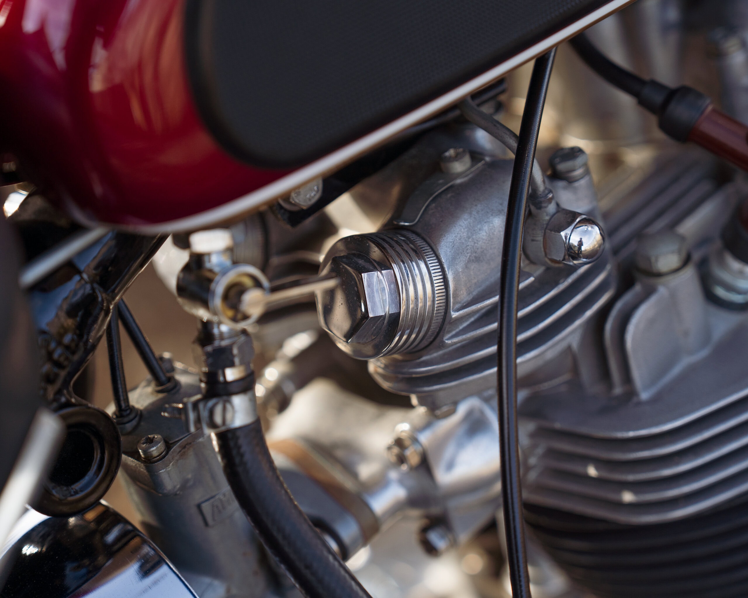 The keen-eyed amongst you may recognise this machine. It was originally raffled earlier this year in desert sled trim, finished in Ivory and Ferrari Pozzi Blue with high-level pipes. The winner, Michael Stapley, was unable to take the bike, so we reacquired it and have since rebuilt and refinished it into this stunning TT Special tribute.