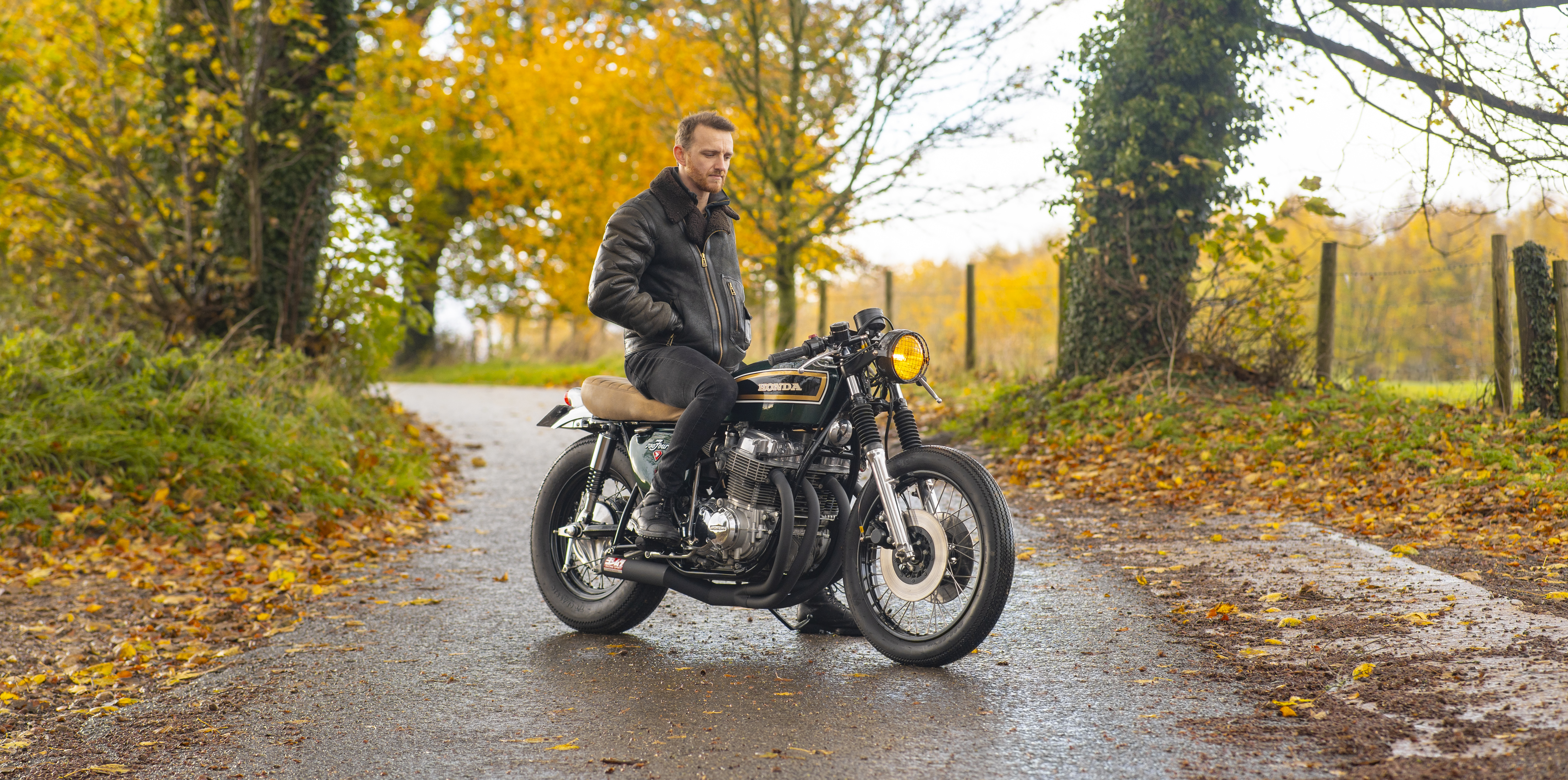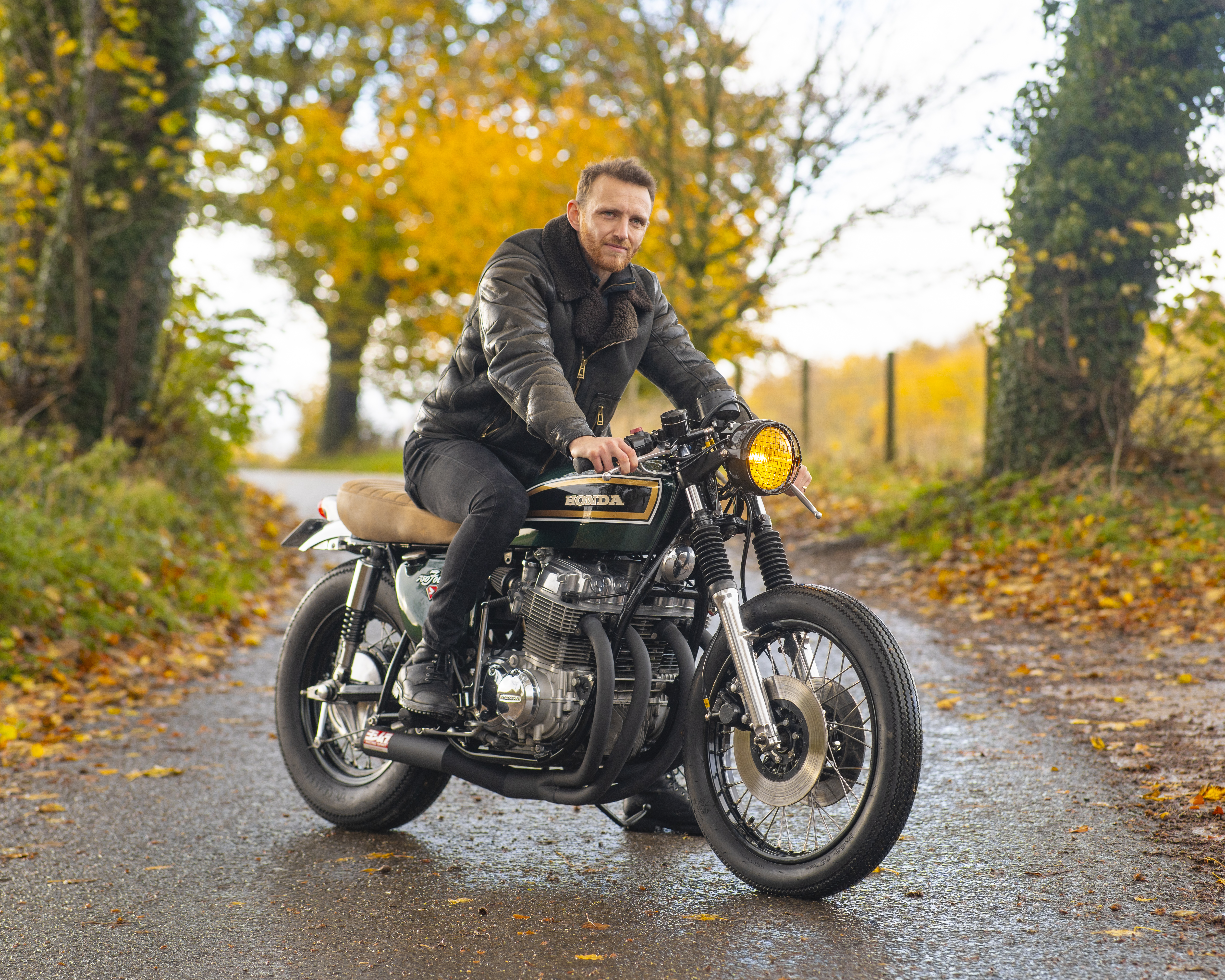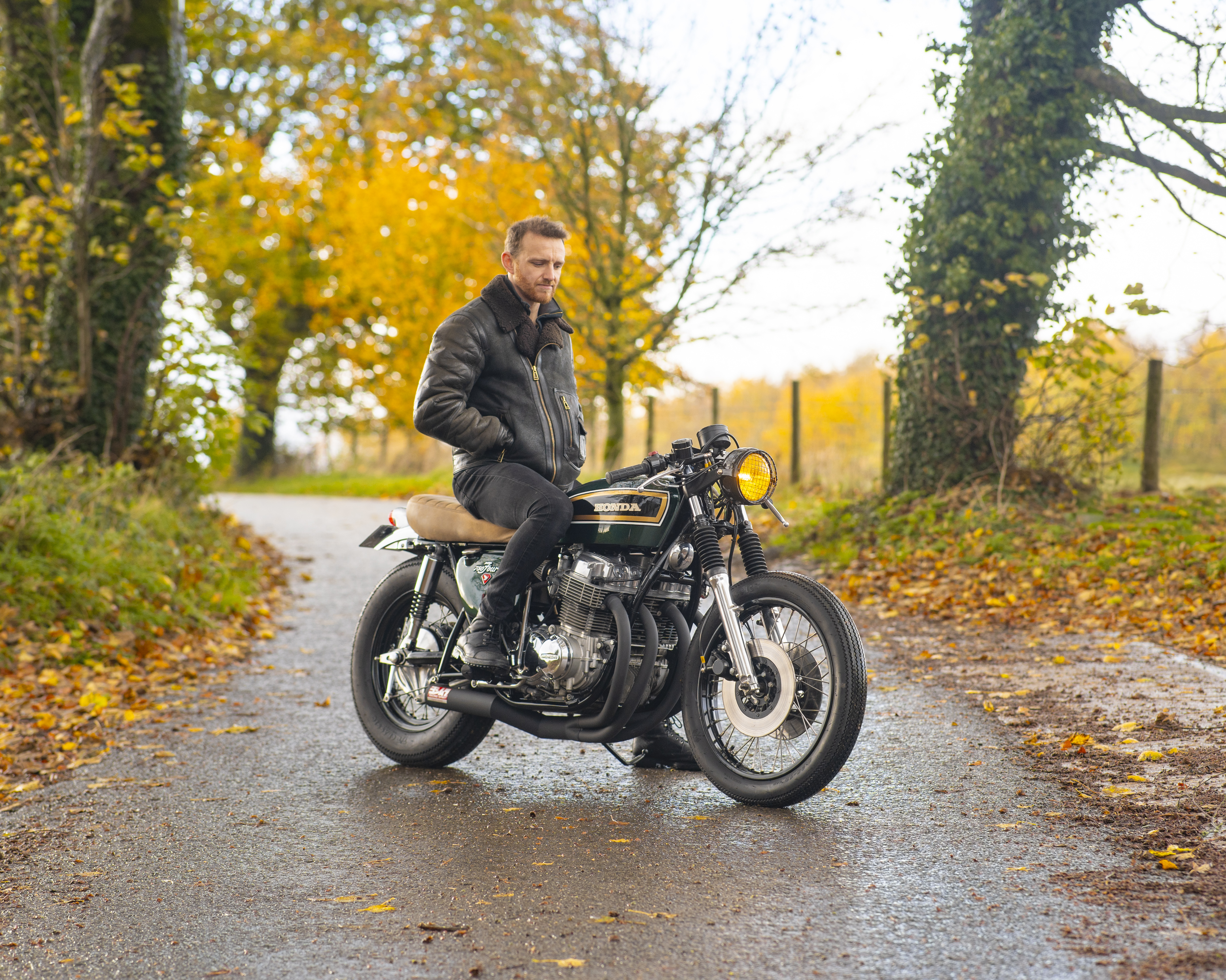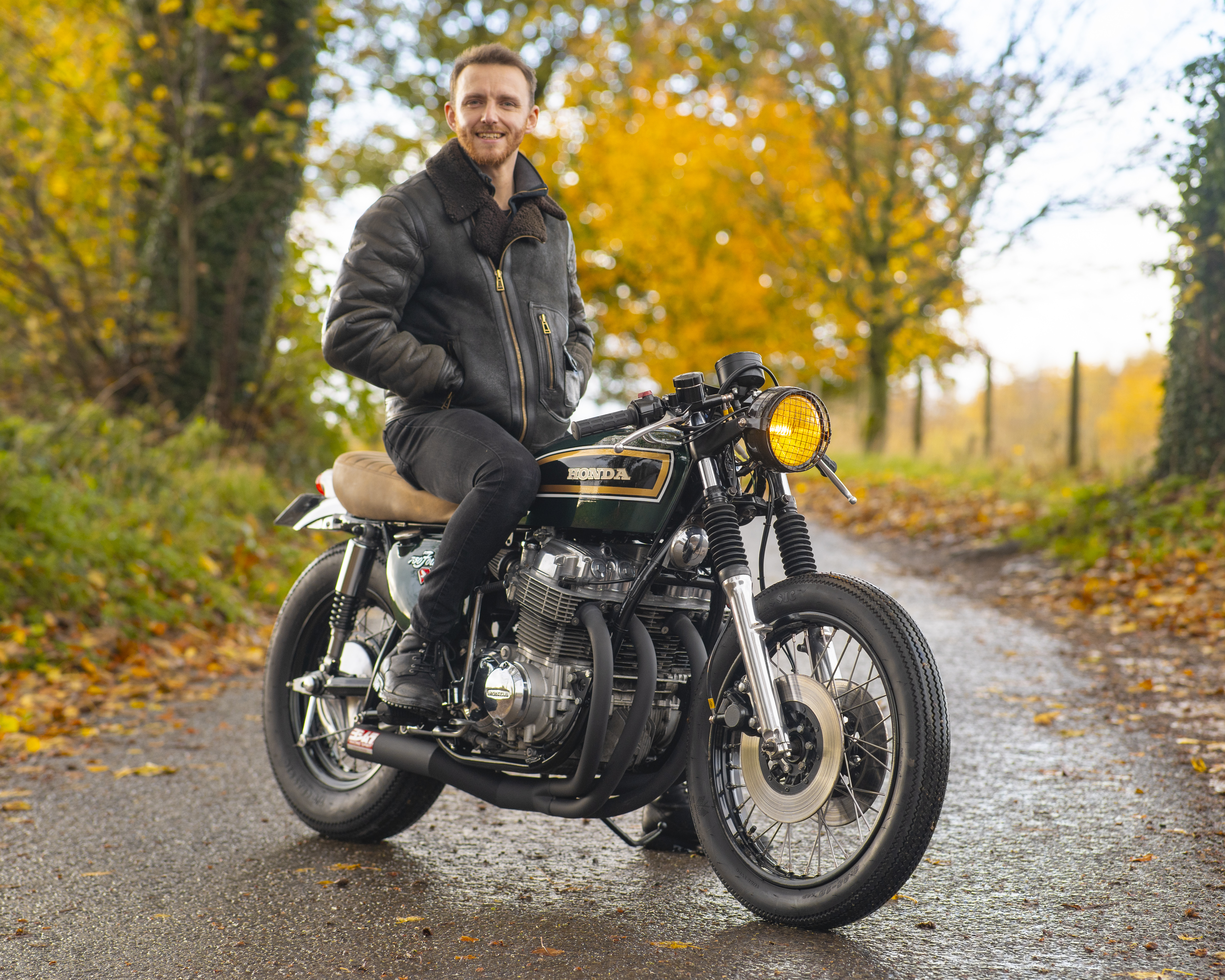 Finished in a custom deep green with black, gold and white tank accents, and topped off with a tan leather-trimmed seat pad, this build perfectly captures the spirit of 1970s racing while offering modern usability and classic style.