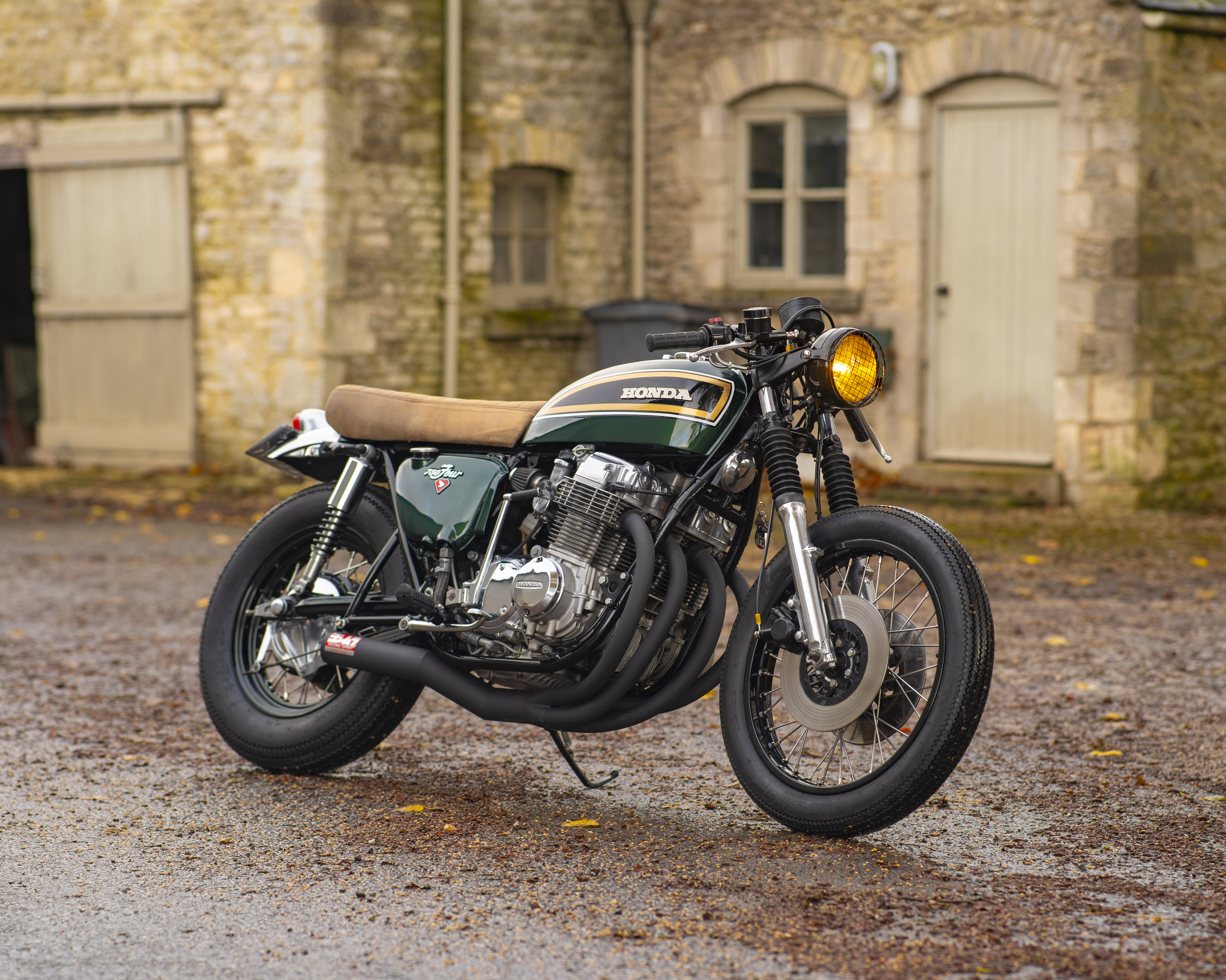 A beautifully executed custom café racer based on the legendary Honda CB750 Four K2. This 1972 example has just undergone a transformation into a high-spec café racer with a striking aesthetic, upgraded performance parts, and a sound to match thanks to the Yoshimura Cyclone full-race 4-into-1 exhaust.