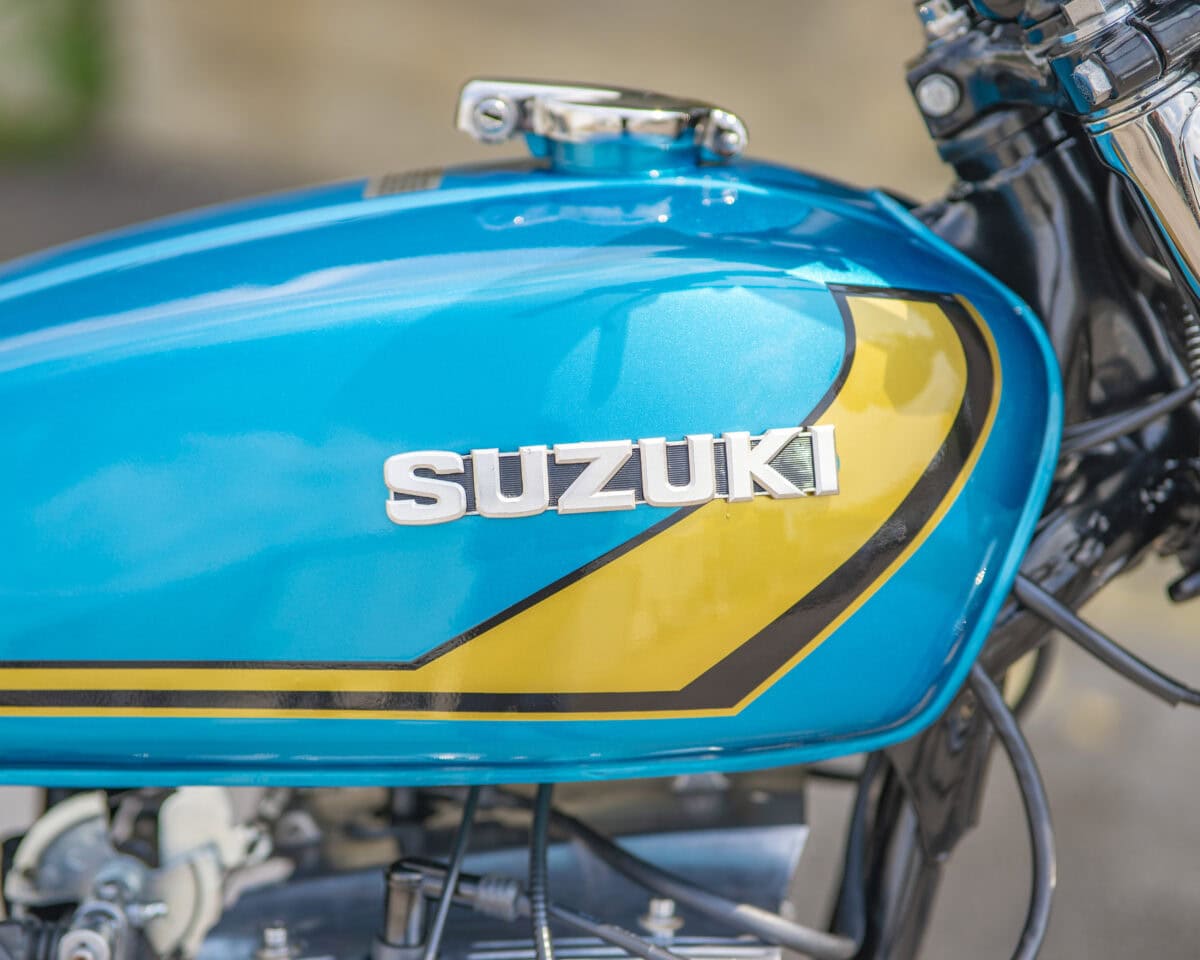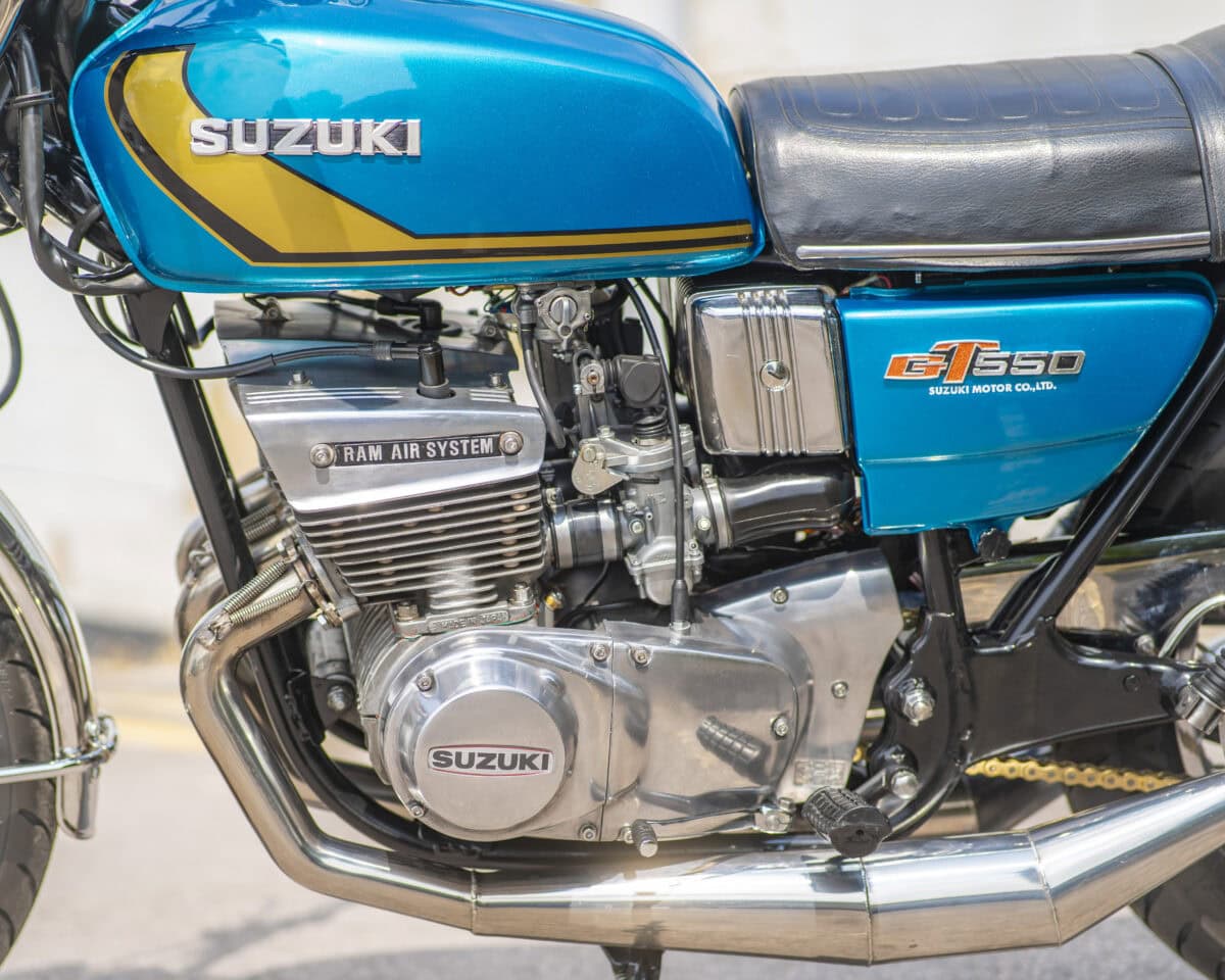 A freshly rebuilt example of the iconic Suzuki GT550L from 1974, finished in its factory-correct Candy Turquoise colour. This classic two-stroke triple has just undergone a comprehensive restoration and will require careful running-in.