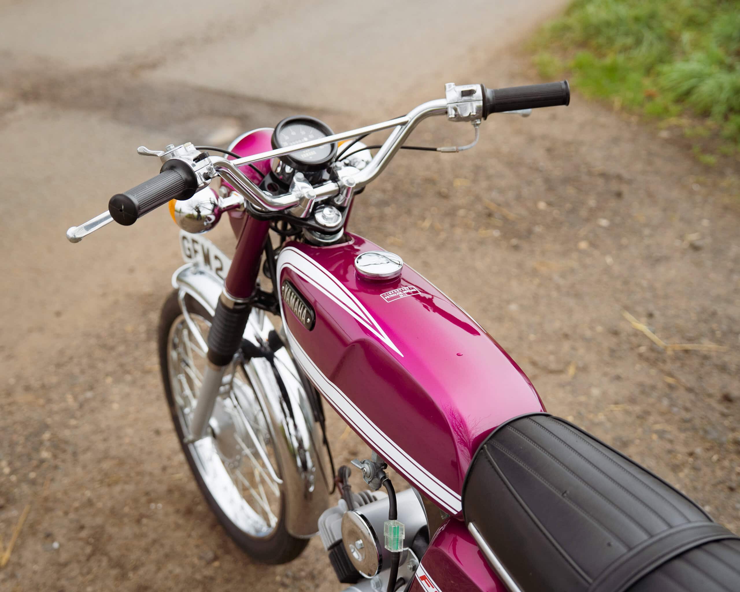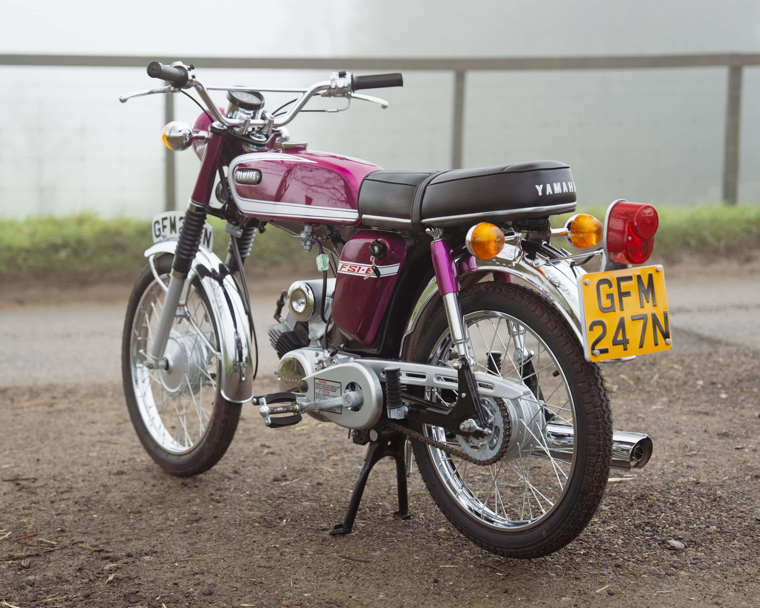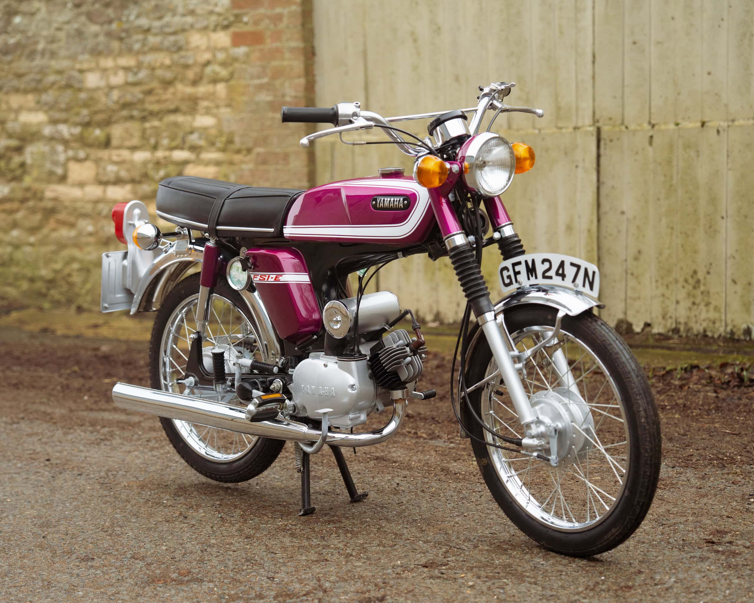 A fantastic example of Yamaha’s most iconic learner motorcycle, this 1974 Yamaha FS1E is finished in the highly desirable Purple Popsicle colour scheme—widely regarded as one of the best and most collectible FS1E finishes.