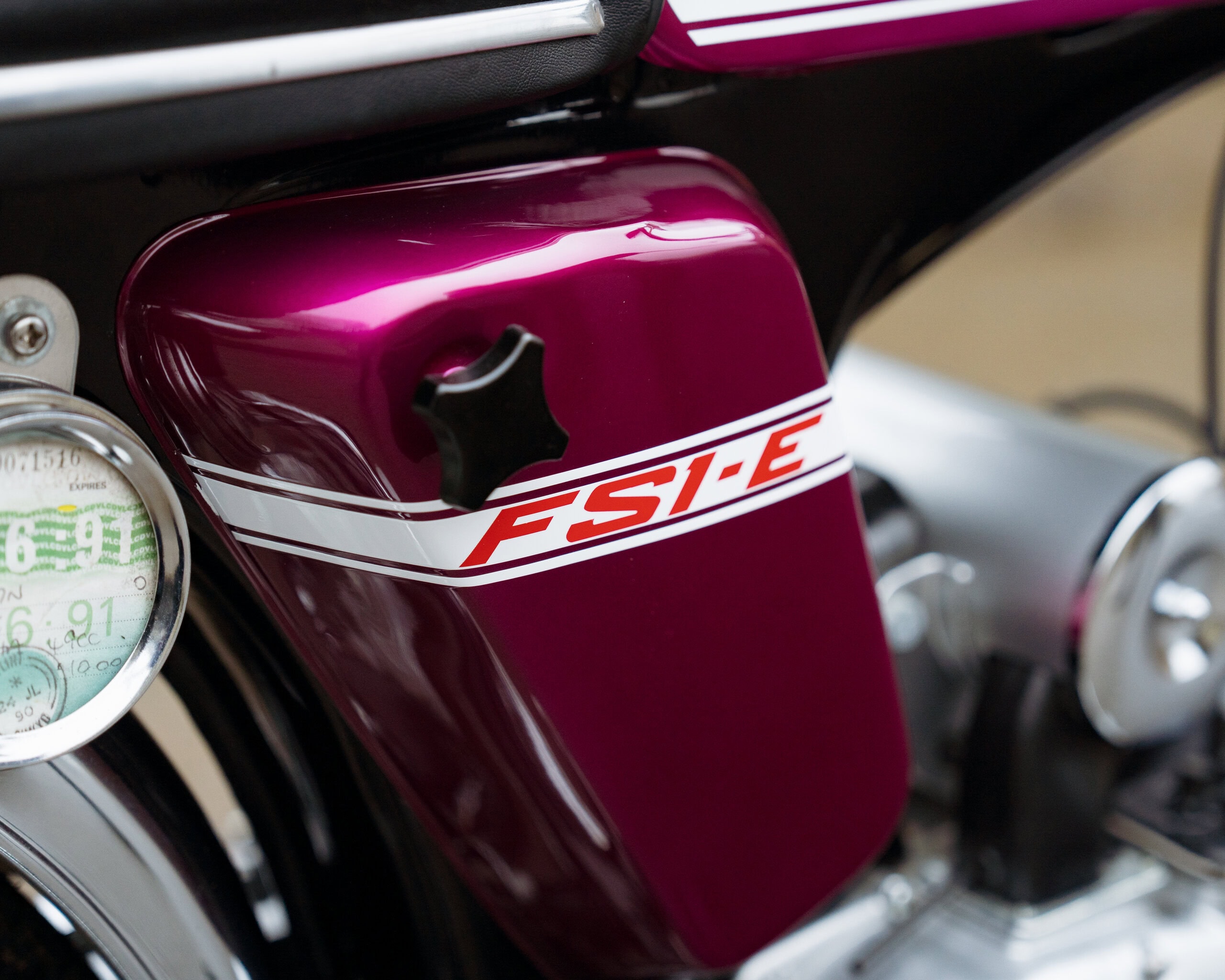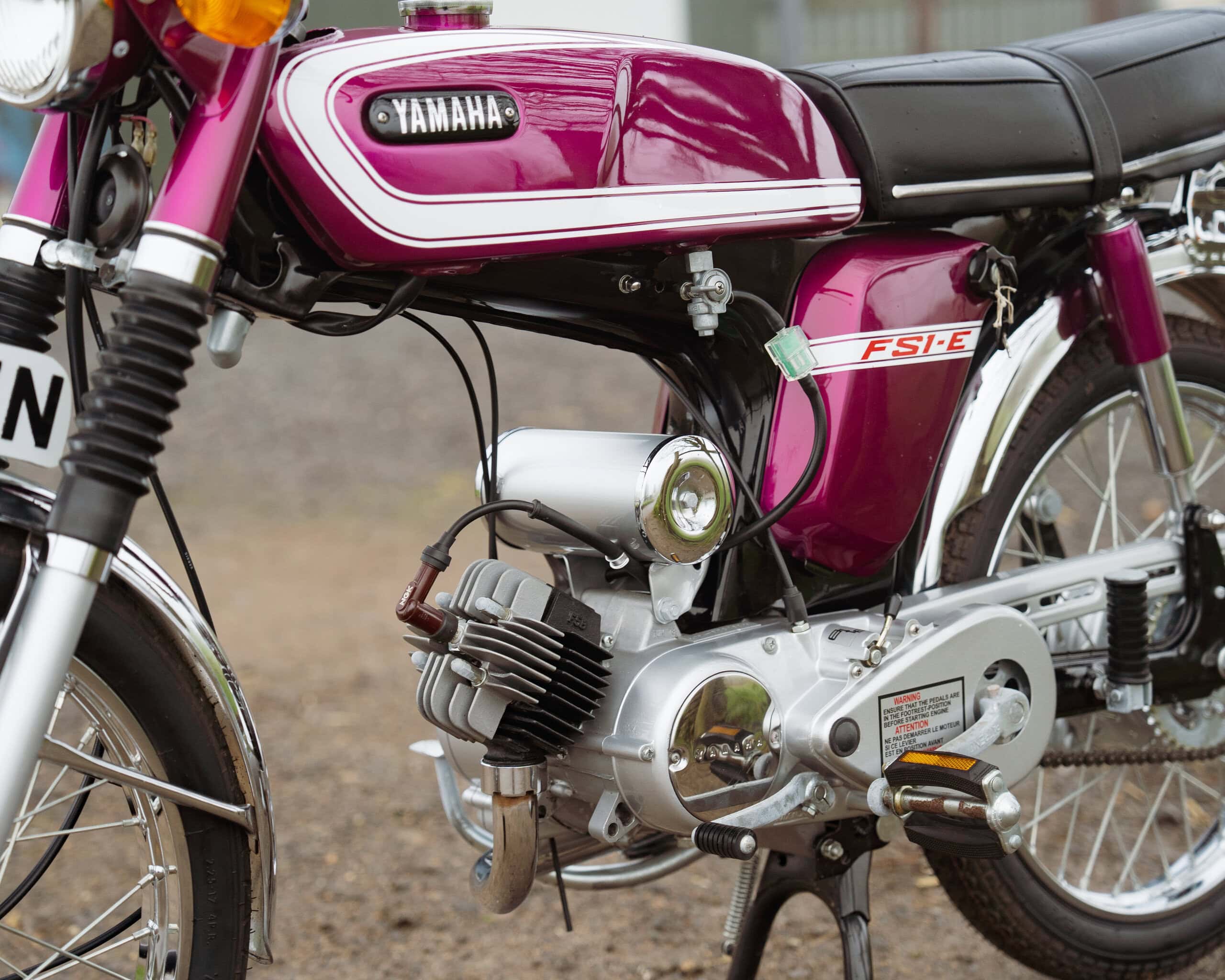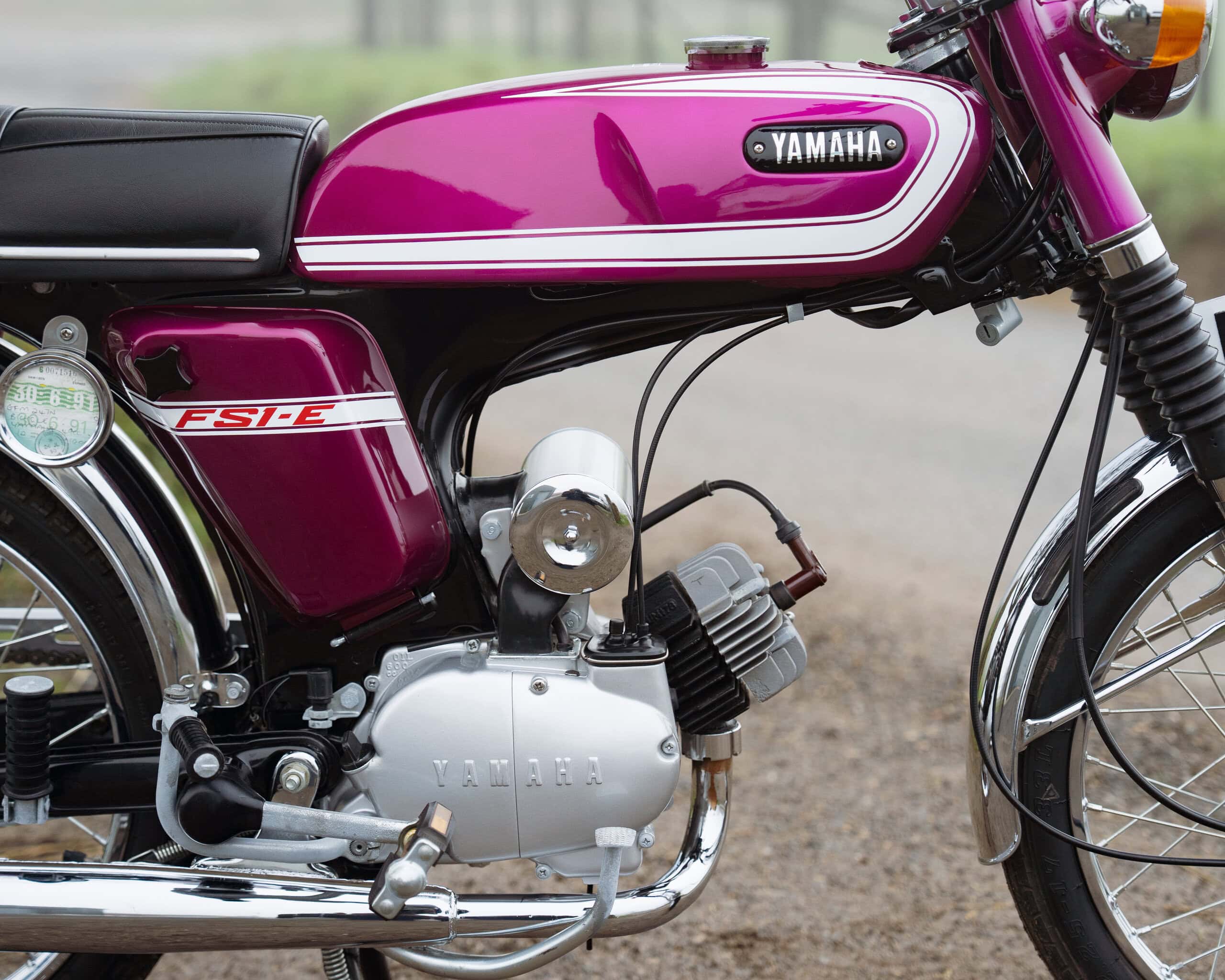 A fantastic example of Yamaha’s most iconic learner motorcycle, this 1974 Yamaha FS1E is finished in the highly desirable Purple Popsicle colour scheme—widely regarded as one of the best and most collectible FS1E finishes.
