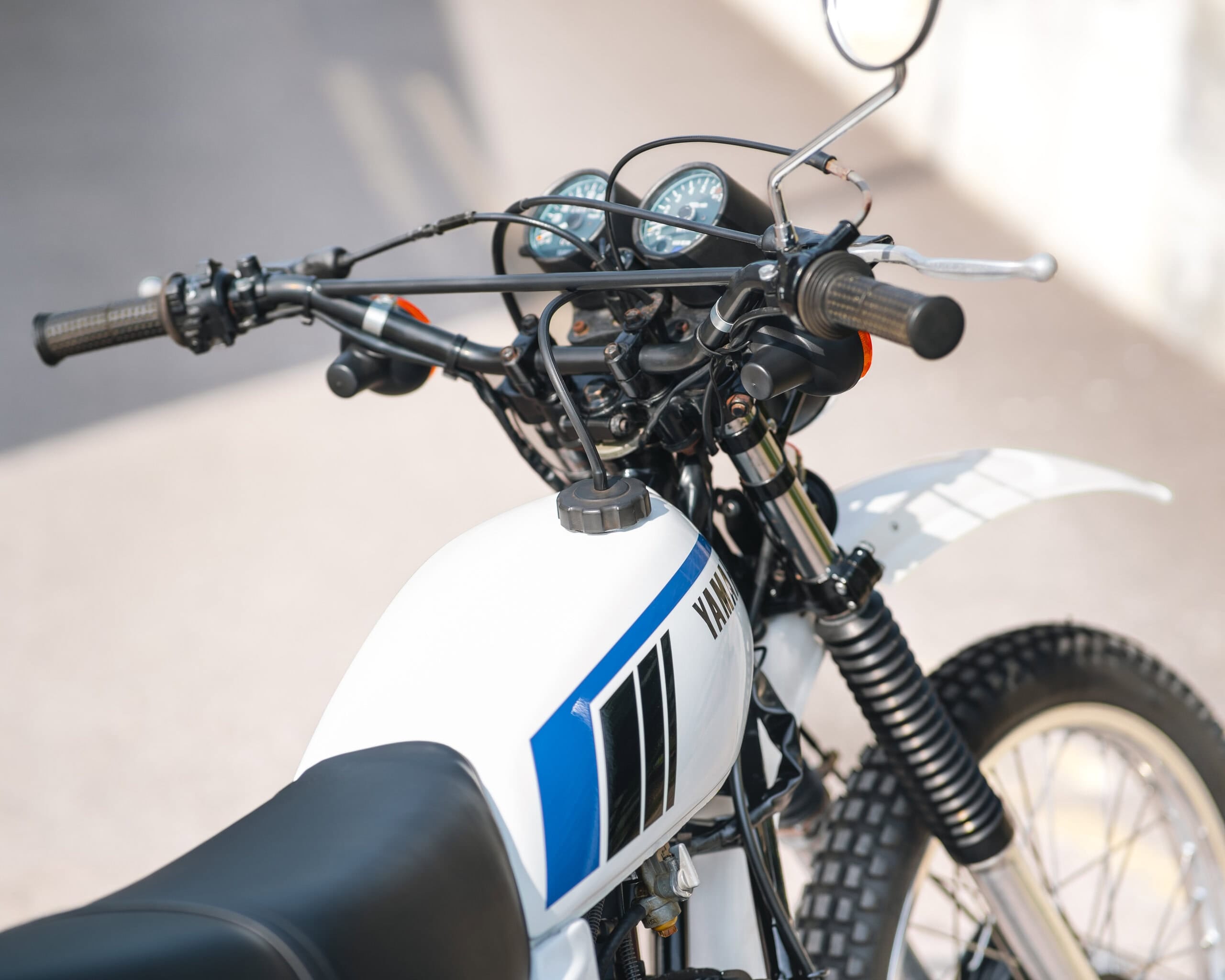 A very tidy example of Yamaha’s classic dual-purpose 250cc trail bike. This 1982 DT250MX appears to be an older restoration and remains in lovely condition, showing the care taken during its upkeep.