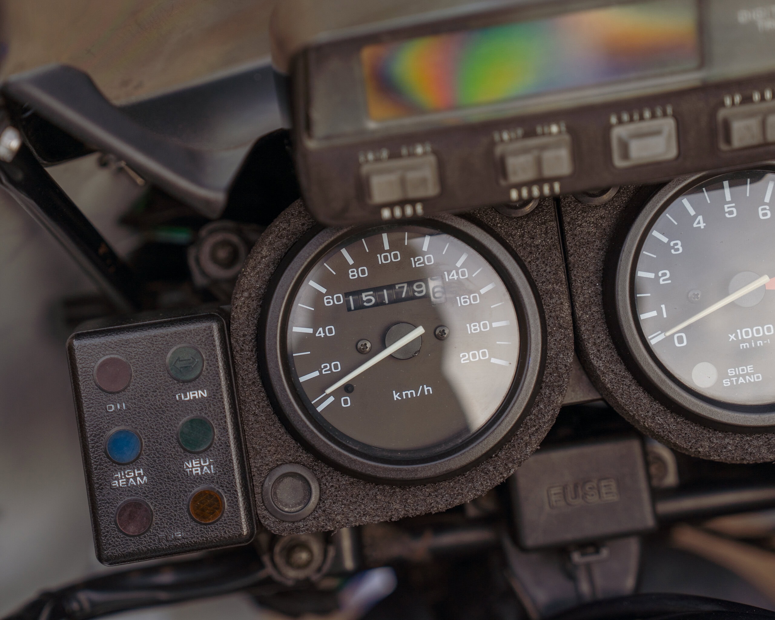 Cosmetically, a lot of money has been spent on brand new paintwork and decals, with the decals lacquered over for a properly finished look. It retains great practical touches too, including the original toolkit in the toolbox, crash bars, and a working helmet lock, and it’s sitting on Mitas tyres—perfect for a bike that’s built to roam.