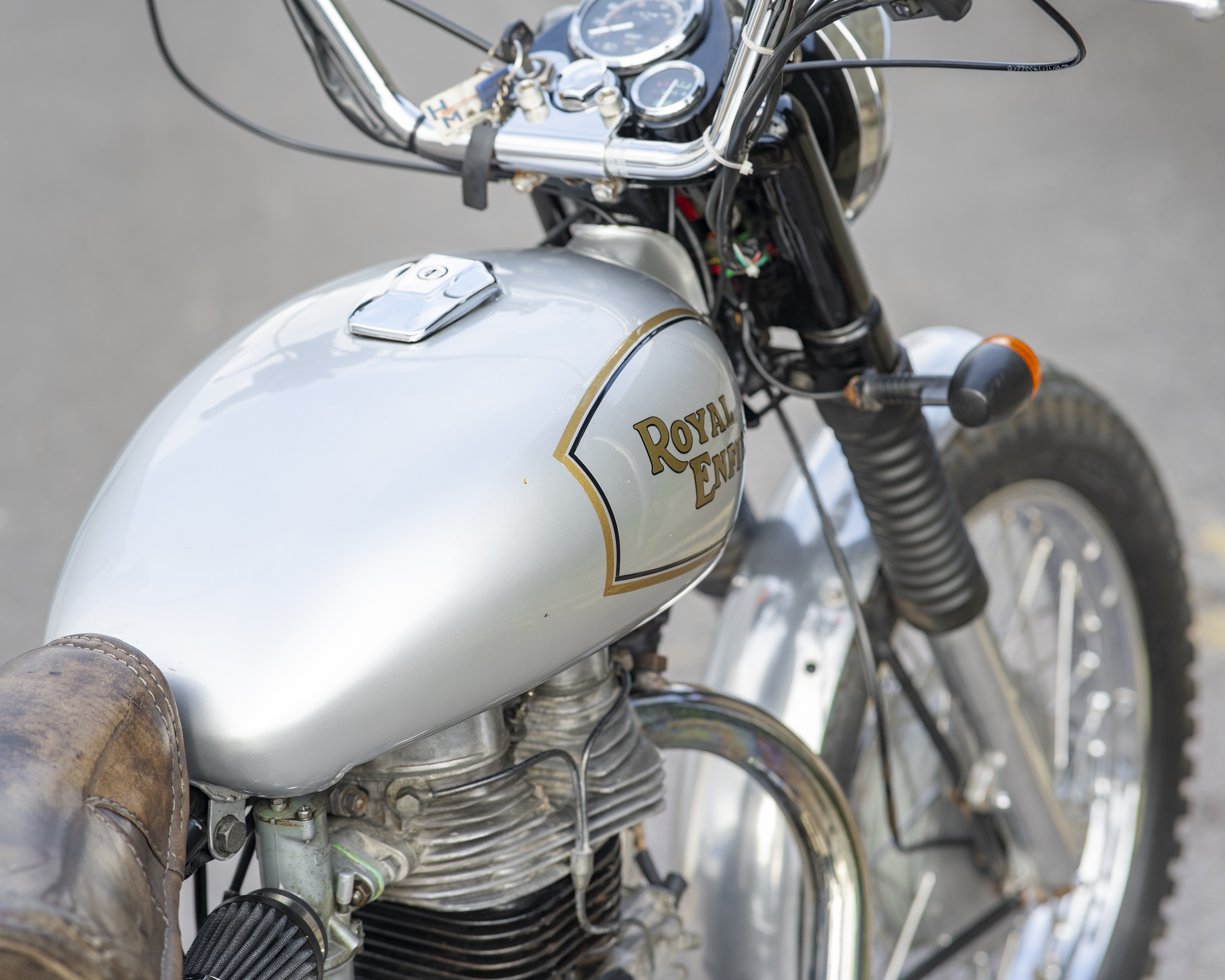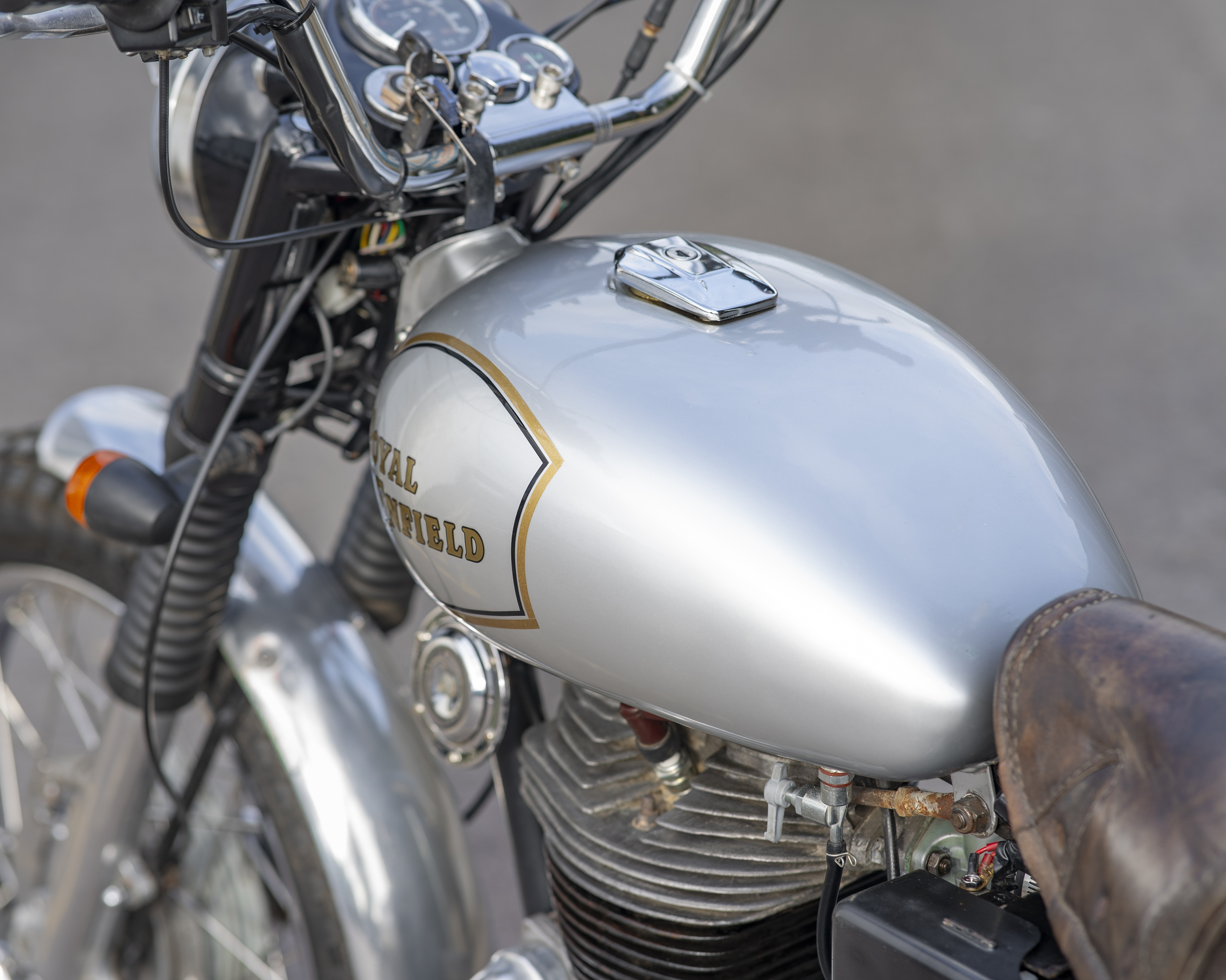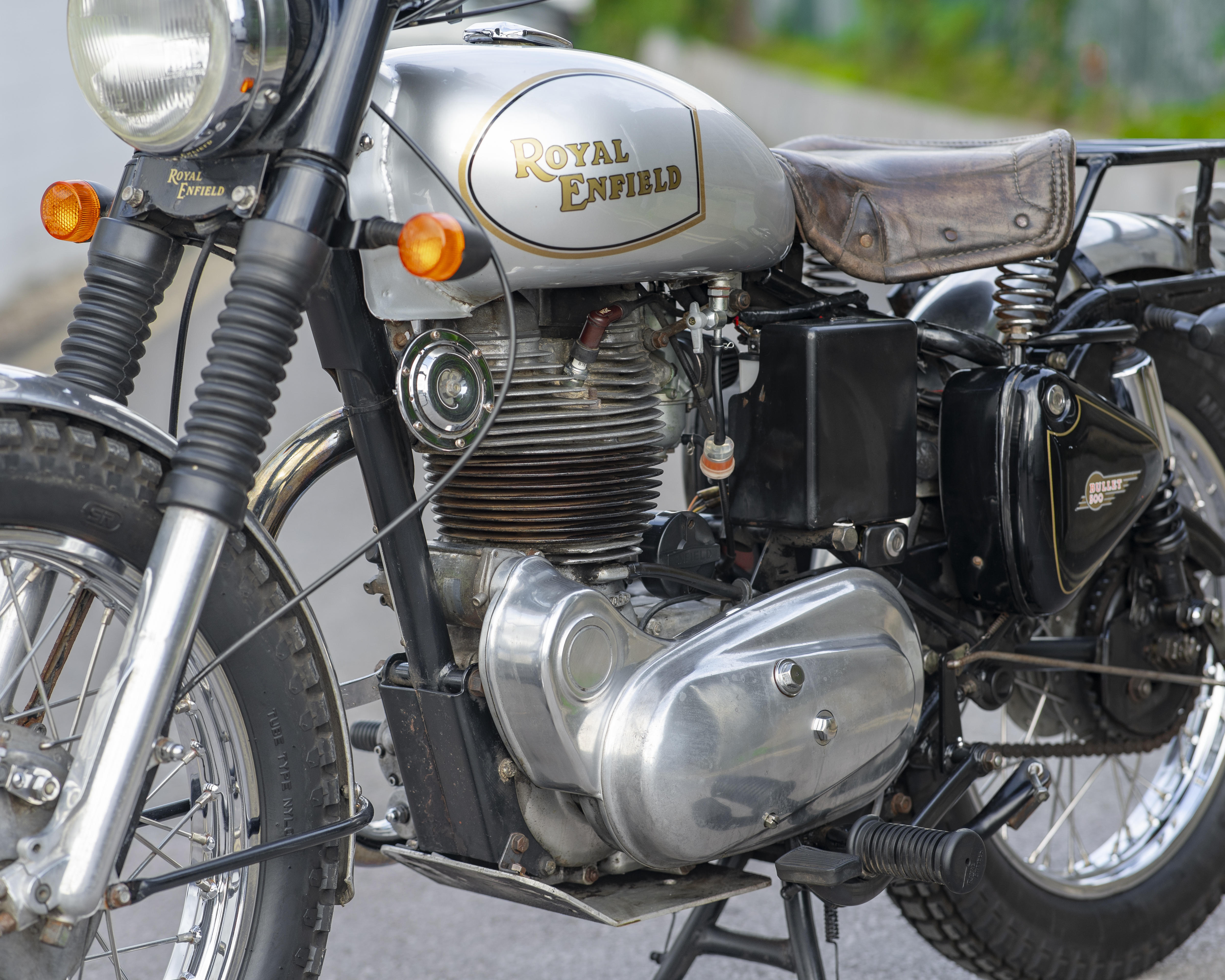 This Royal Enfield Bullet 500 is a well-executed trials conversion that adds a ton of visual presence and usability. It’s a great blend of classic Enfield reliability and go-anywhere fun, whether you’re heading to a show, a field, or a forest trail.