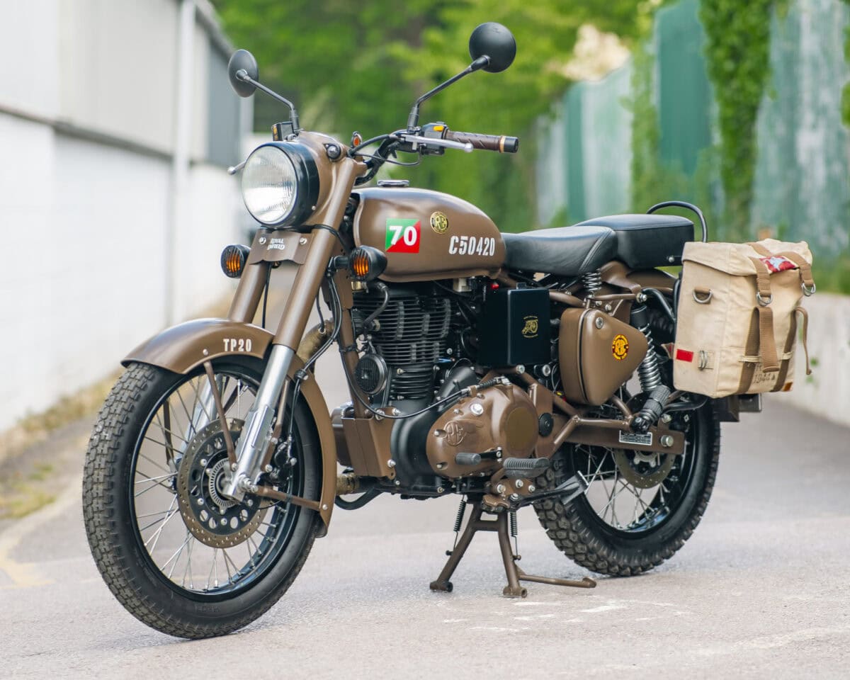 - Inspired by the WWII Flying Flea paratrooper motorcycles, with classic military styling and period details.