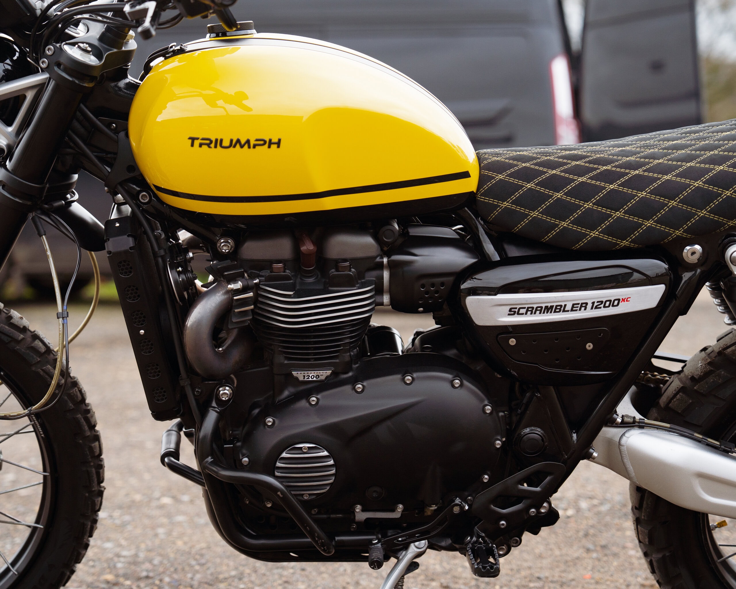 A truly unique and beautifully customised 2018 Triumph Scrambler 1200 XC — you will not see another one like this. Finished in a striking yellow and black theme, this machine is an absolute head-turner, upgraded throughout with premium components, bespoke touches, and high-end craftsmanship.