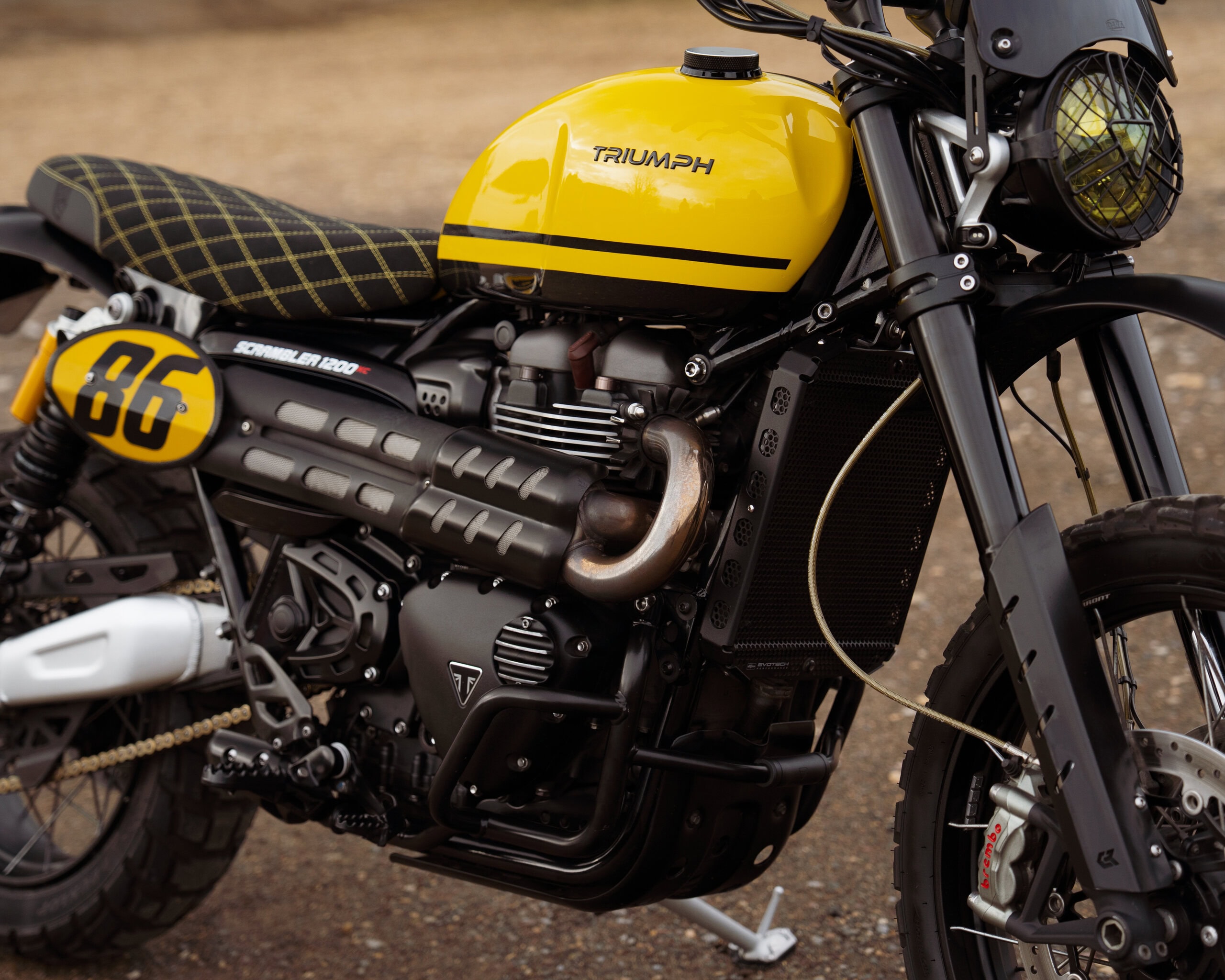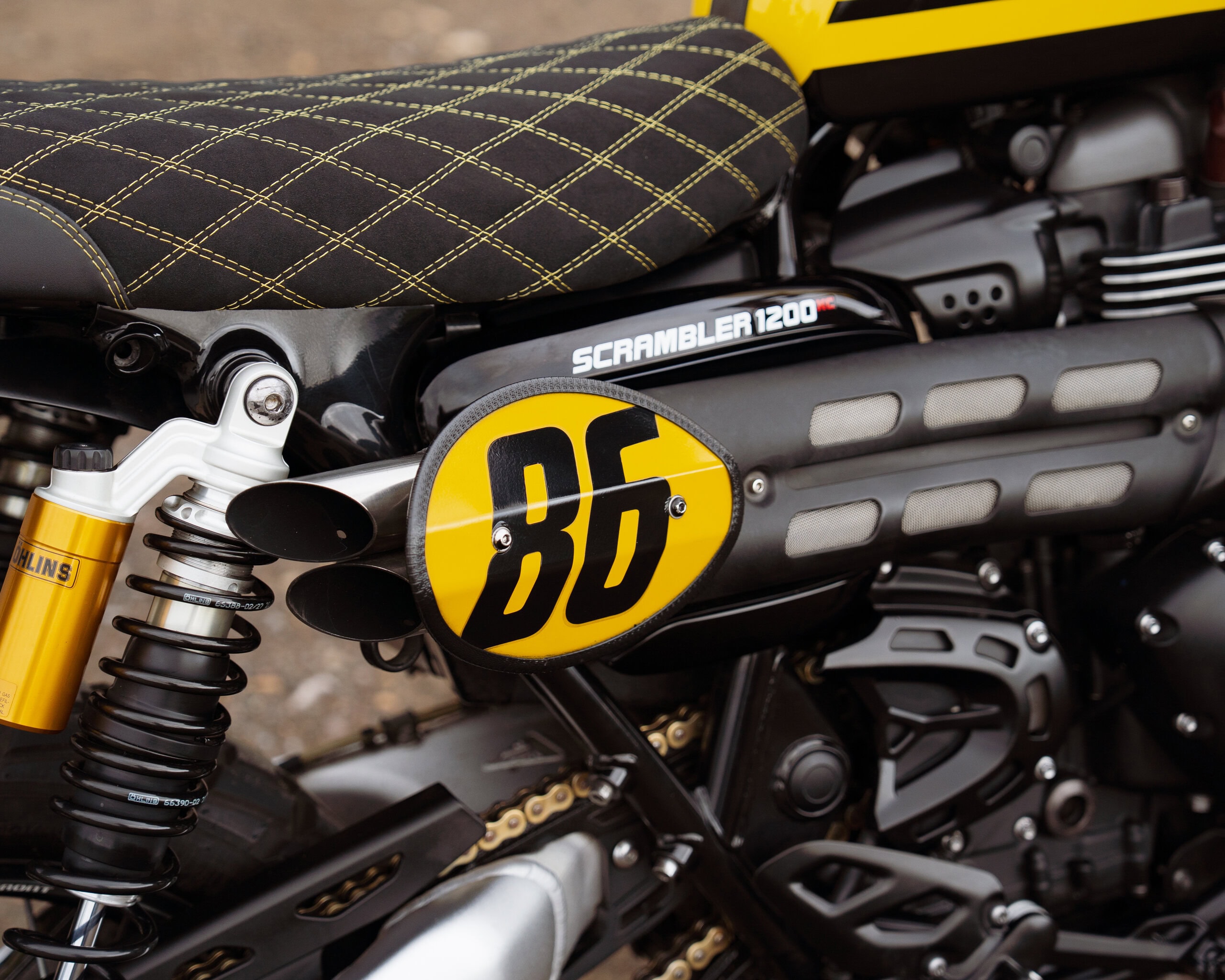 A huge amount has been invested in this build, from the custom paintwork to the luxury Tom Hurley seat and top-quality aftermarket parts. With Öhlins suspension, slash-cut exhausts, Motone upgrades, Raisch detailing and more, this Scrambler is a perfect blend of style, performance, and individuality.